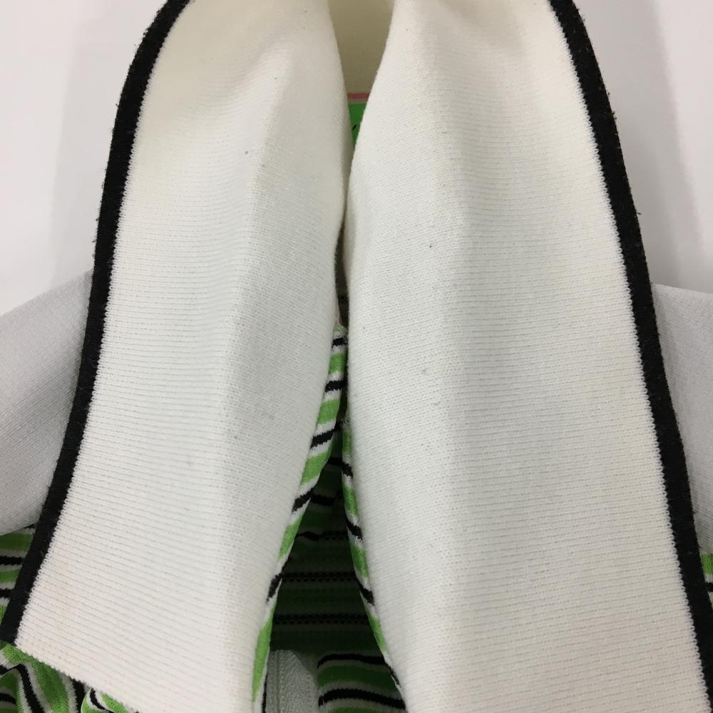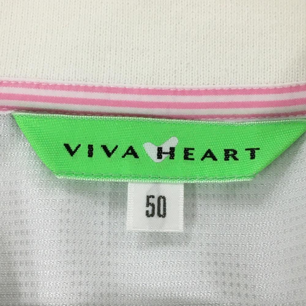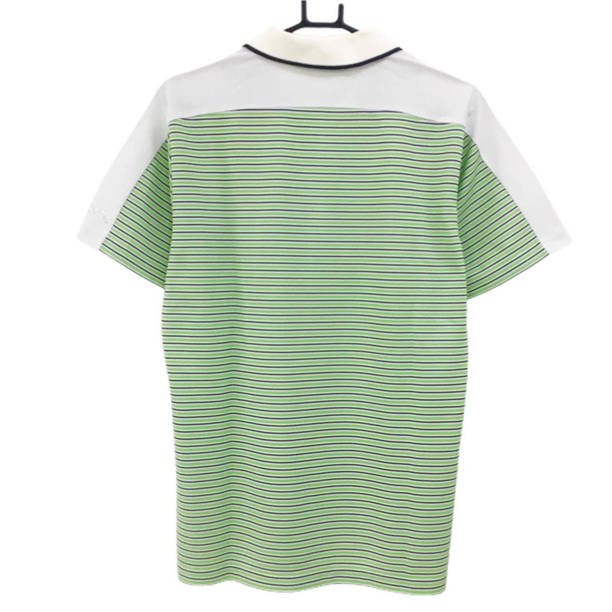 ビバハート 半袖ポロシャツ 白×ライトグリーン ボーダー ハーフジップ メンズ 50(L) ゴルフウェア VIVA HEART
