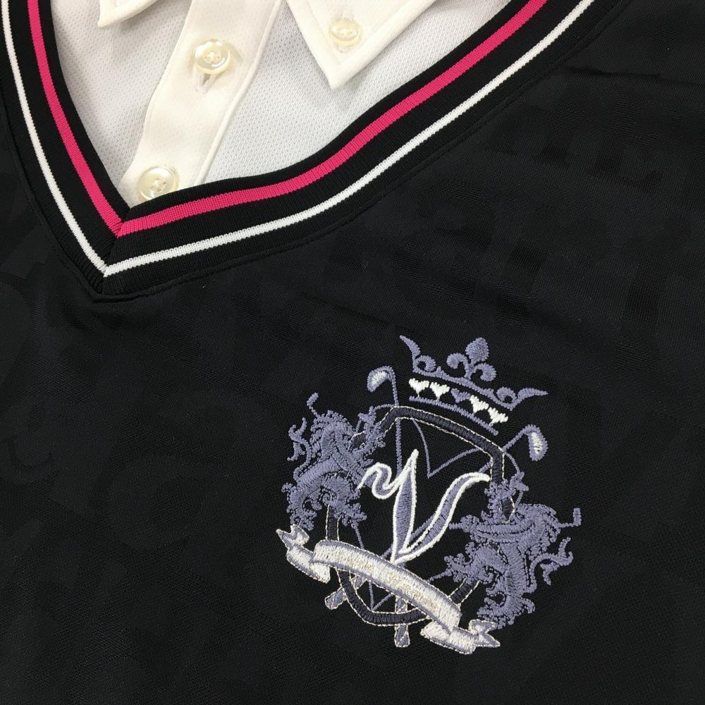 ビバハート 半袖ポロシャツ 黒×白 身頃地模様 レイヤード風 ボタンダウン メンズ 50(L) ゴルフウェア VIVA HEART