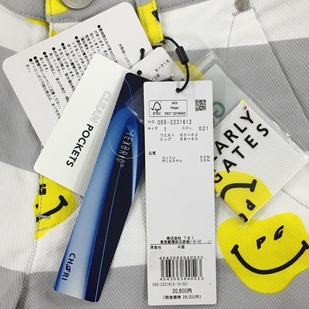 【新品】パーリーゲイツ パンツ 白×グレー ボーダー TOKE NICO ニコちゃん レディース 1(M) ゴルフウェア PEARLY GATES