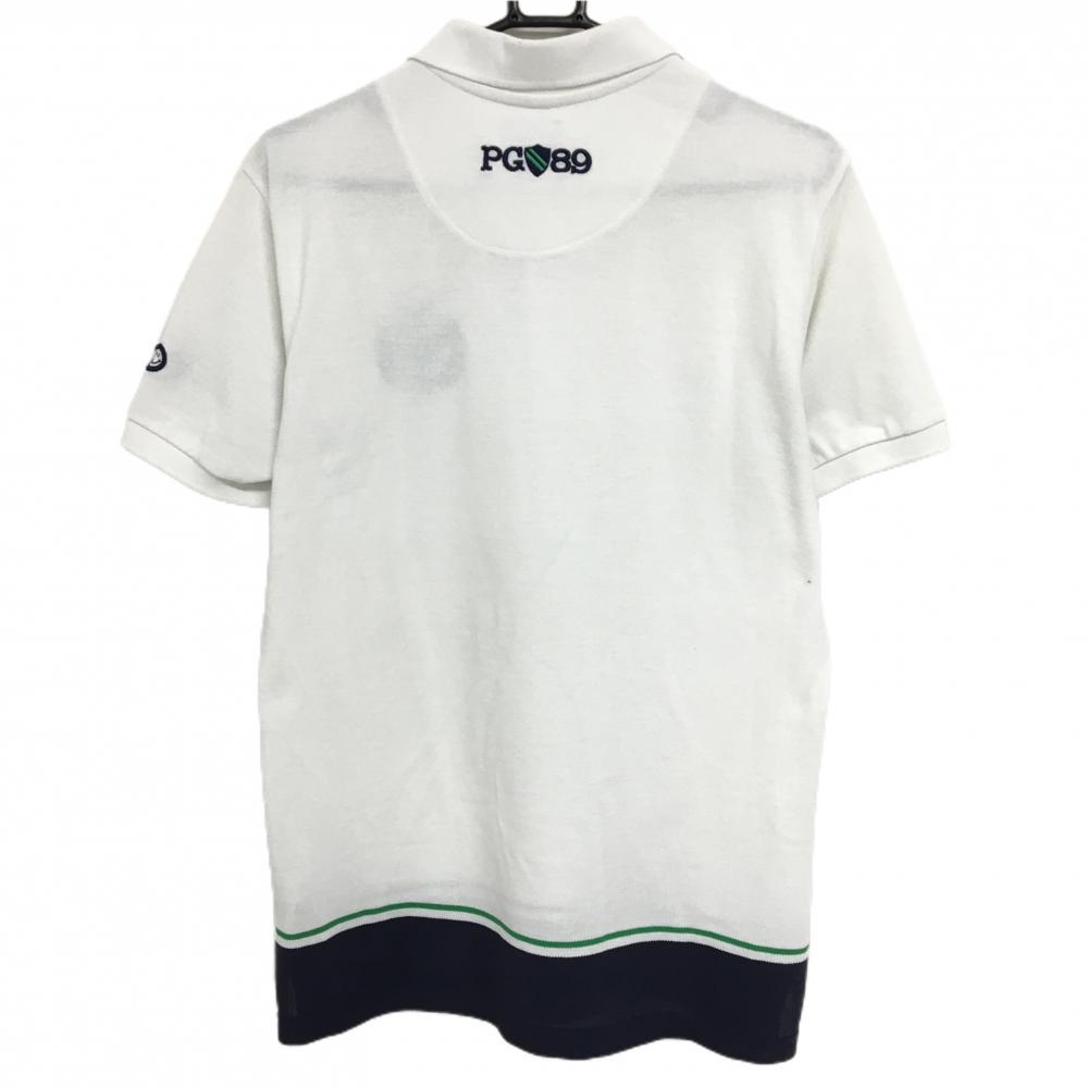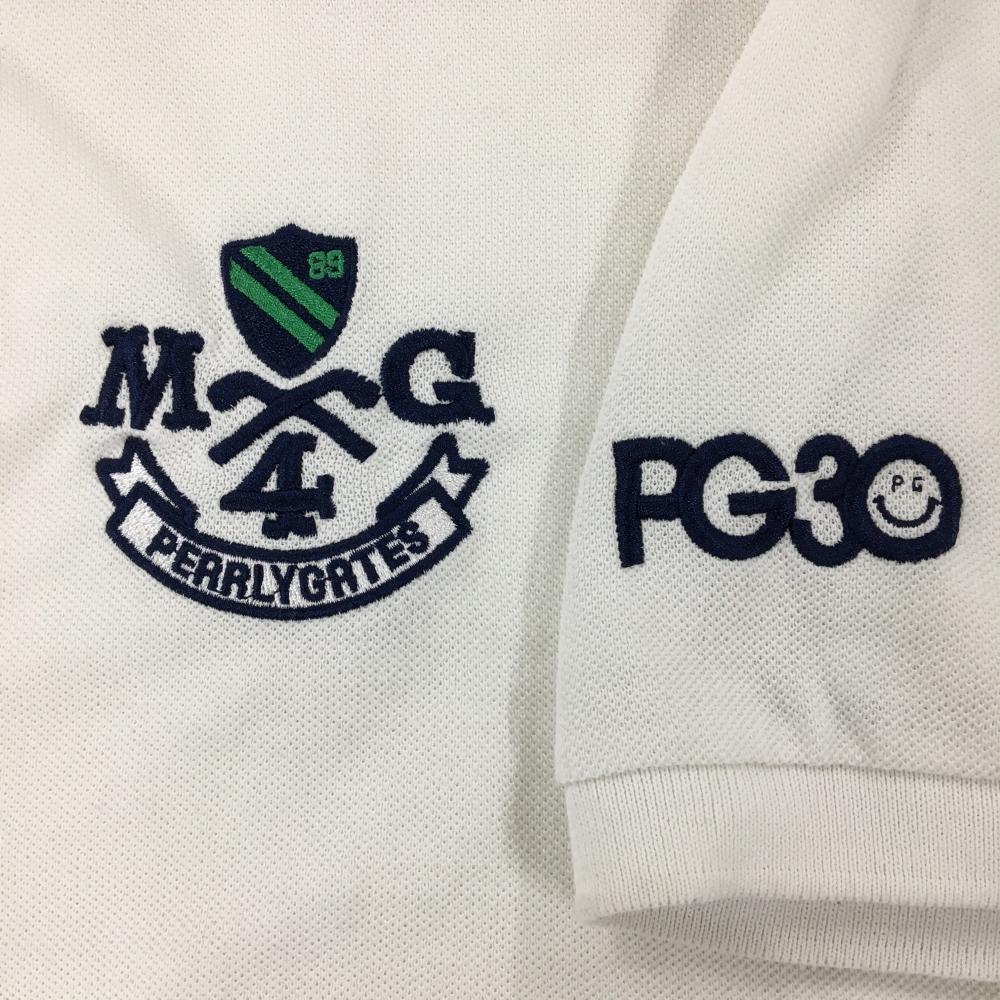 パーリーゲイツ 半袖ポロシャツ 白×ネイビー 30周年 袖ニコちゃん スマイル メンズ 6(XL) ゴルフウェア PEARLY GATES