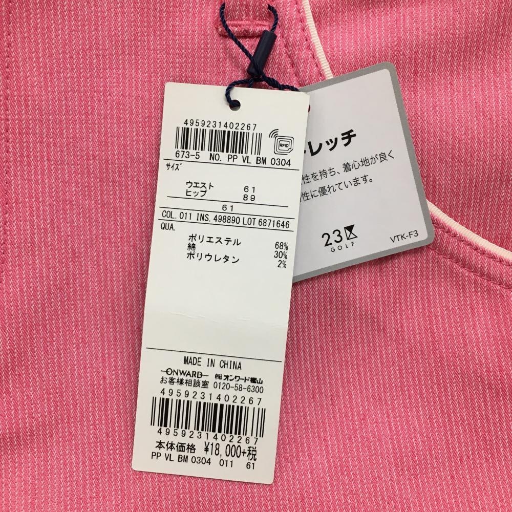 【新品】23区ゴルフ パンツ ピンク×白 細ストライプ地模様 ストレッチ レディース 61 ゴルフウェア 23区