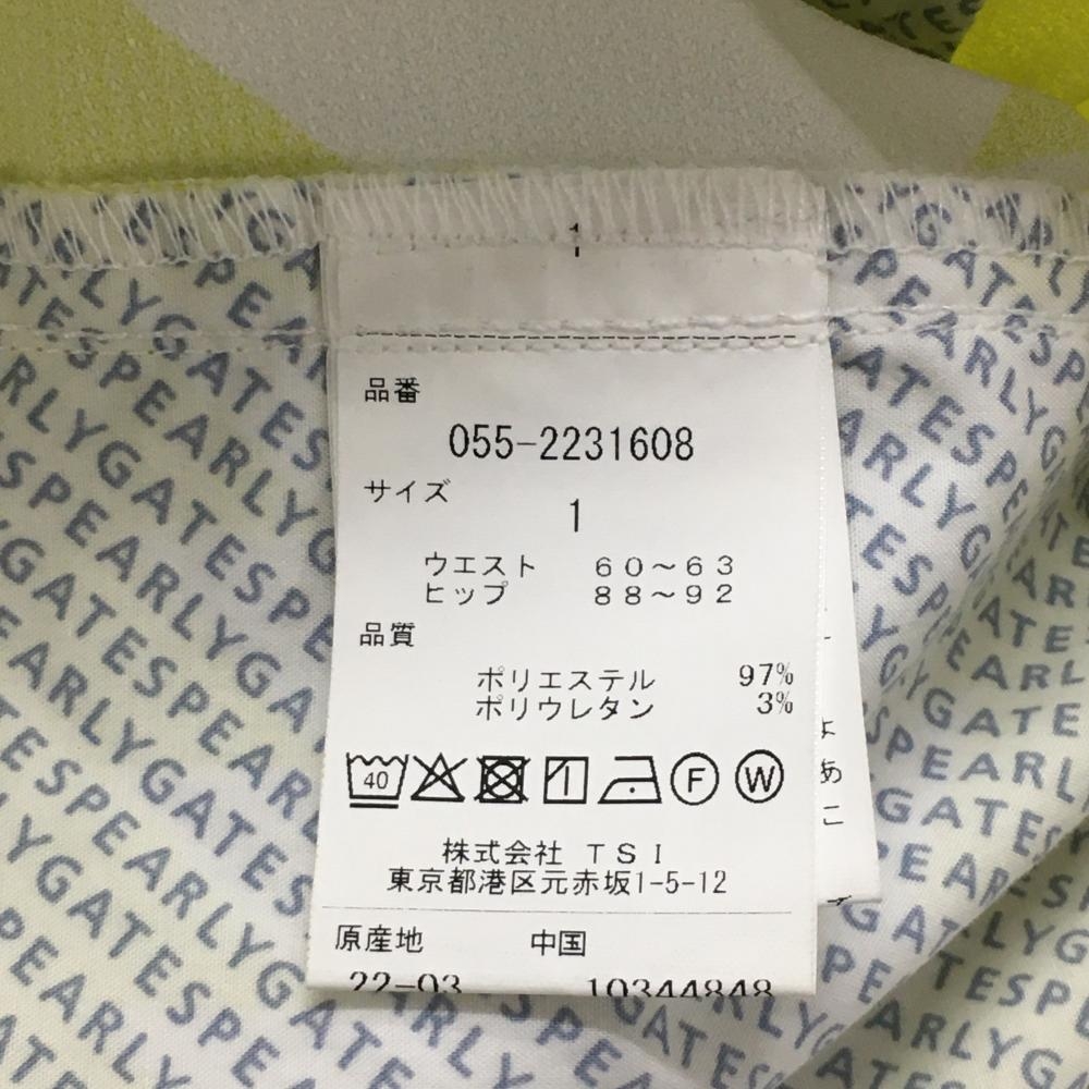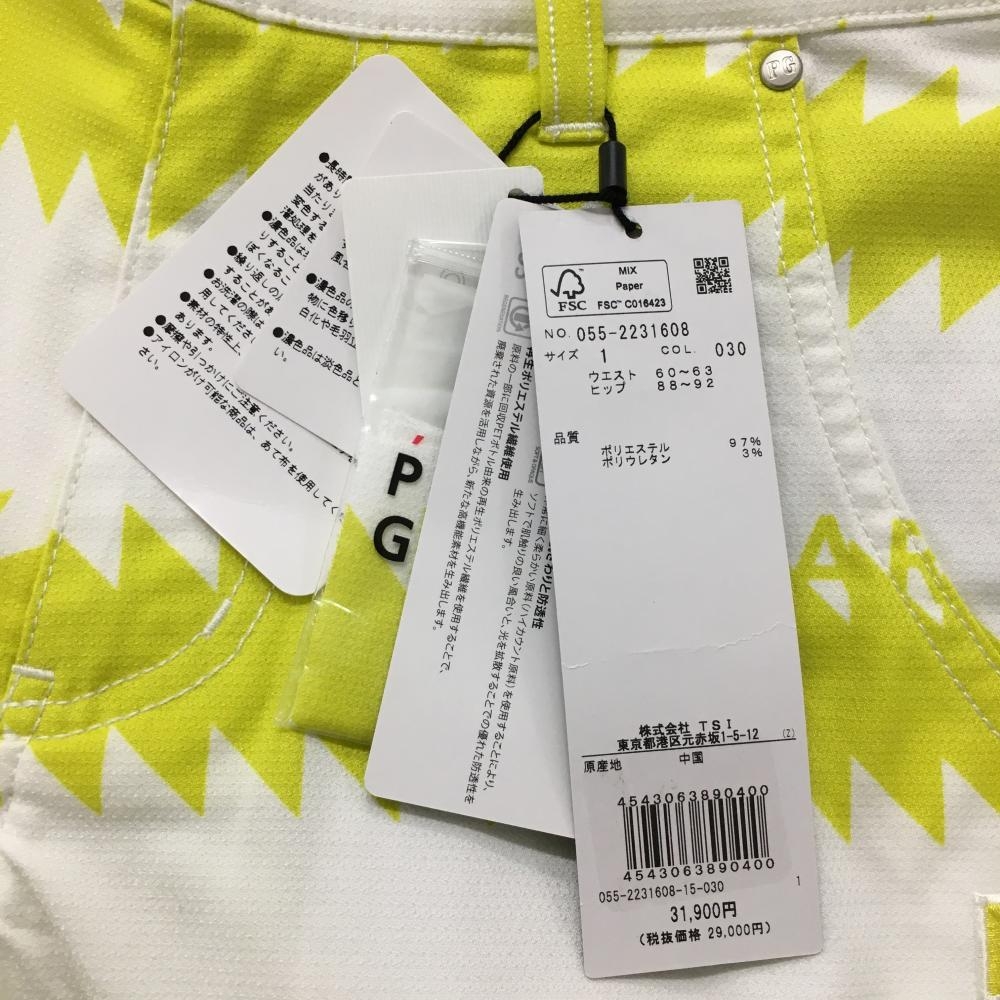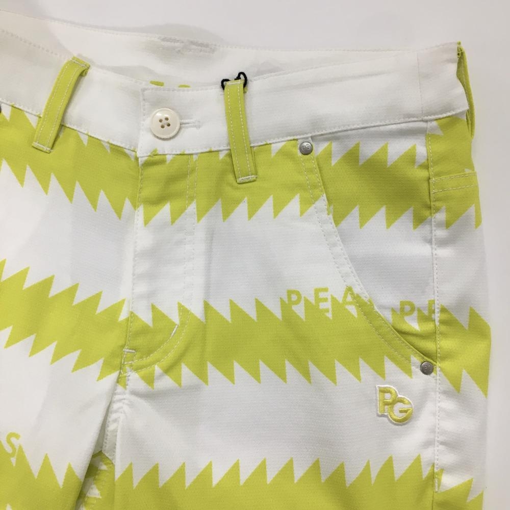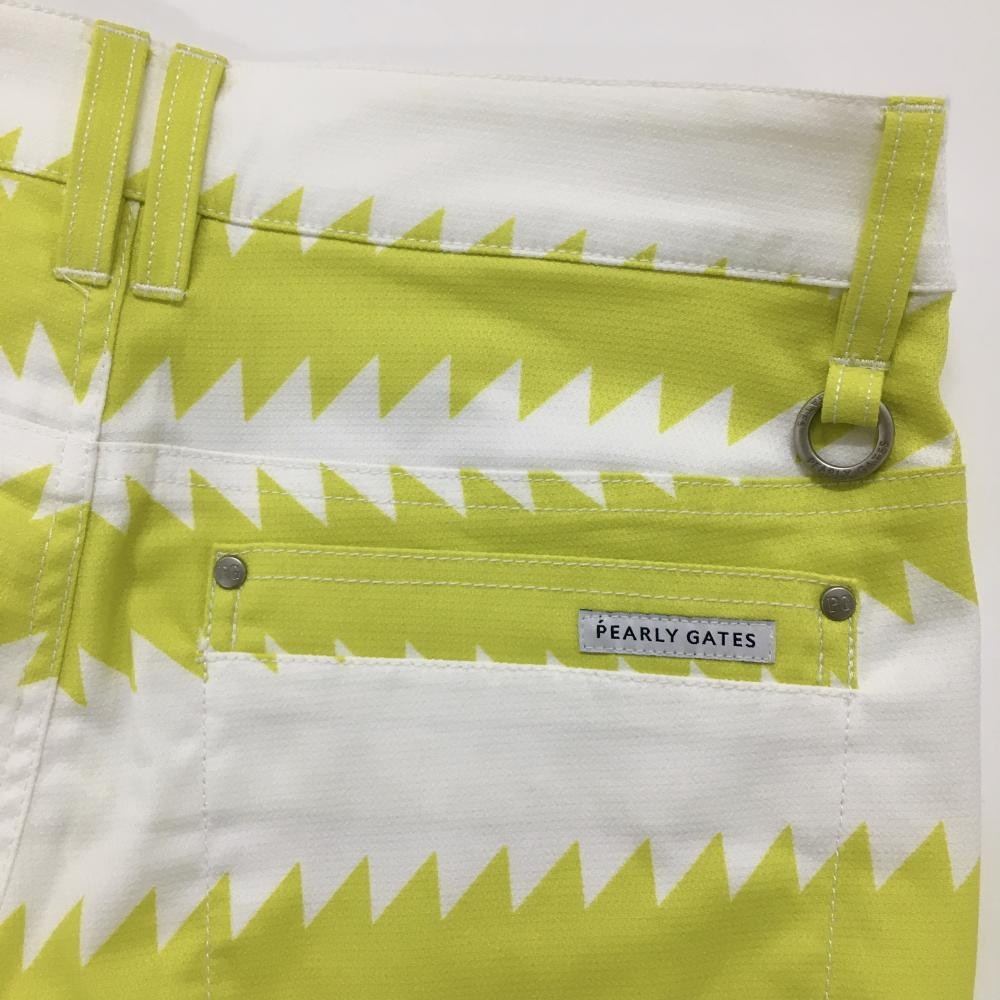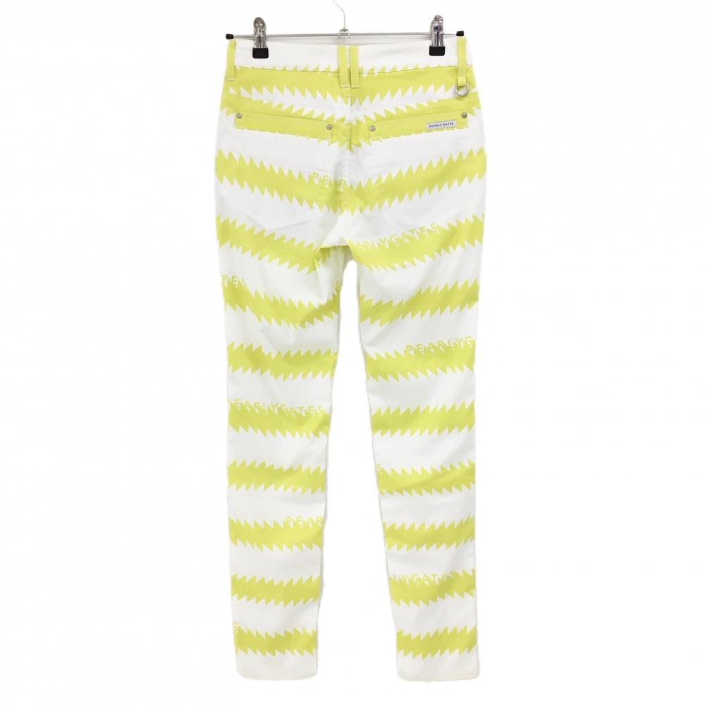 【新品】パーリーゲイツ パンツ 白×イエロー 稲妻 ギザギザボーダー ストレッチ レディース 1(M) ゴルフウェア PEARLY GATES