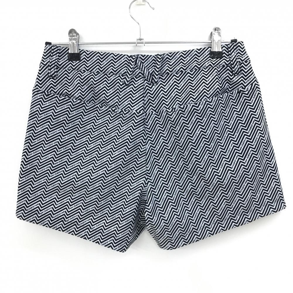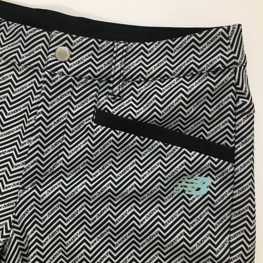 【超美品】ニューバランス ショートパンツ 白×黒 ギザギザボーダー風 ロゴ レディース 1(M) ゴルフウェア 2023年モデル New Balance