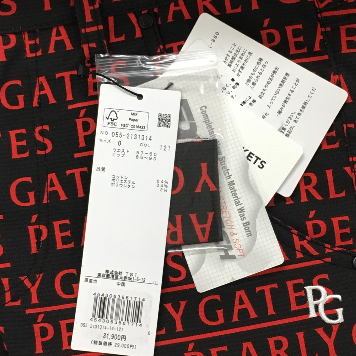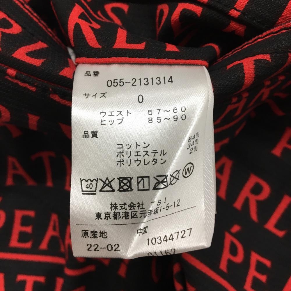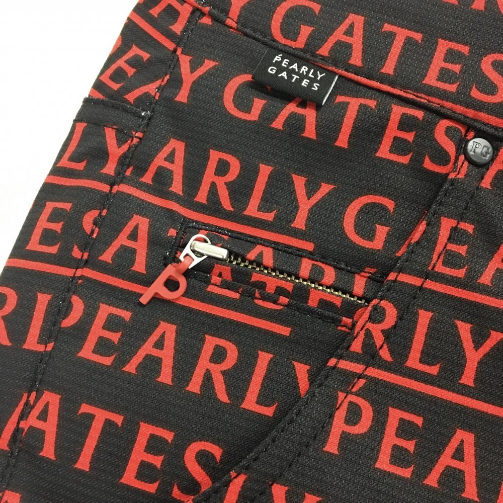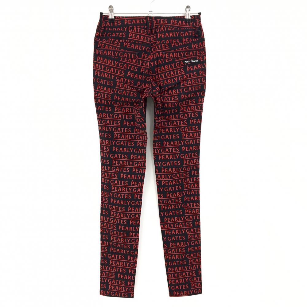 【新品】パーリーゲイツ パンツ 黒×レッド ロゴ総柄 ストレッチ レディース 0(S) ゴルフウェア PEARLY GATES