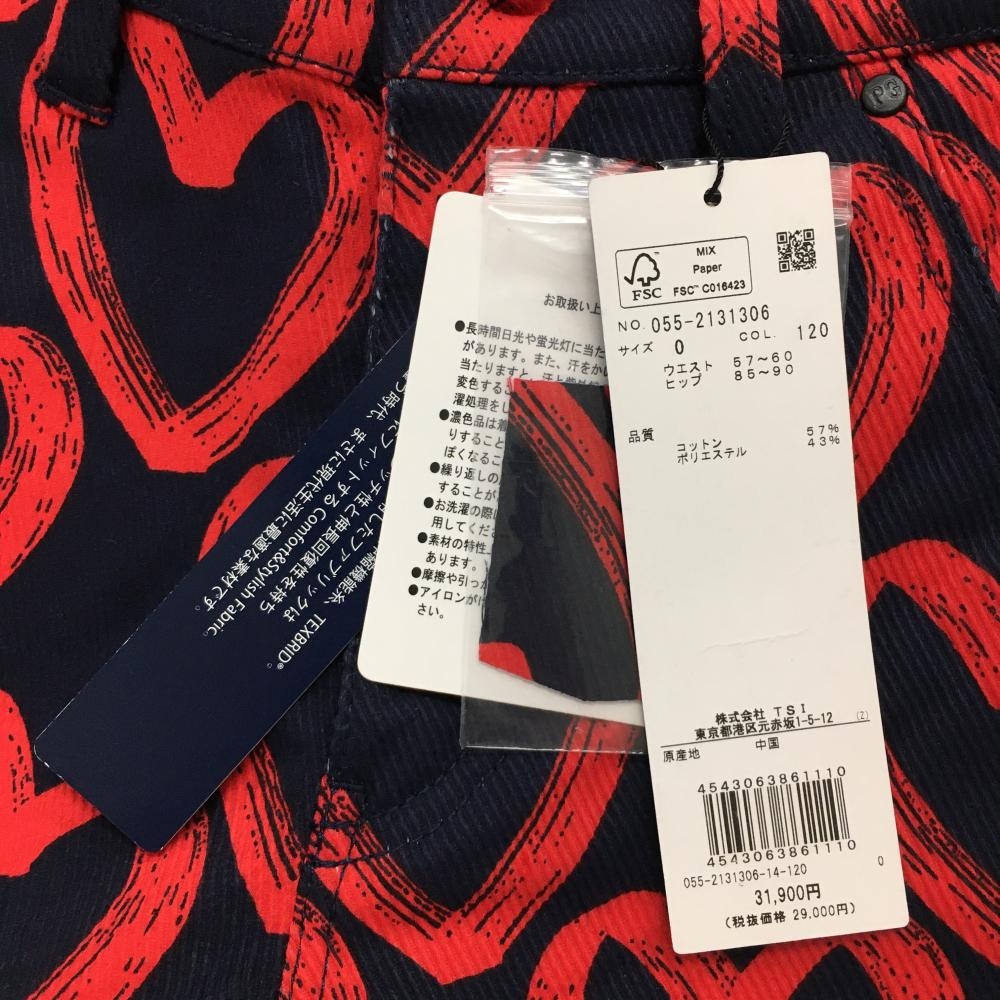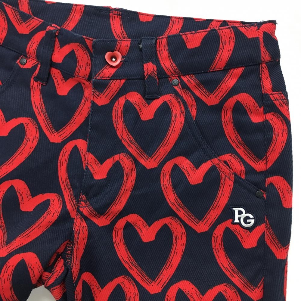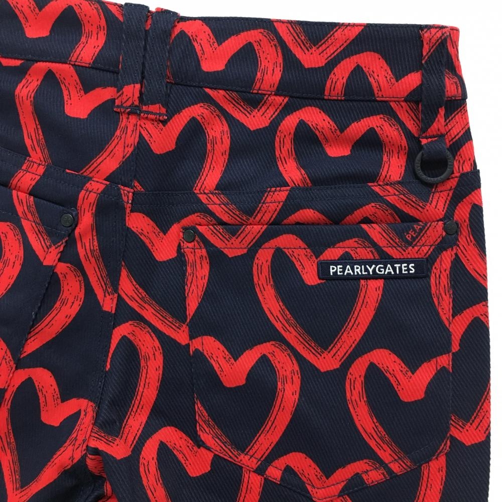 【新品】パーリーゲイツ パンツ ネイビー×レッド ハート柄 ストレッチ レディース 0(S) ゴルフウェア PEARLY GATES