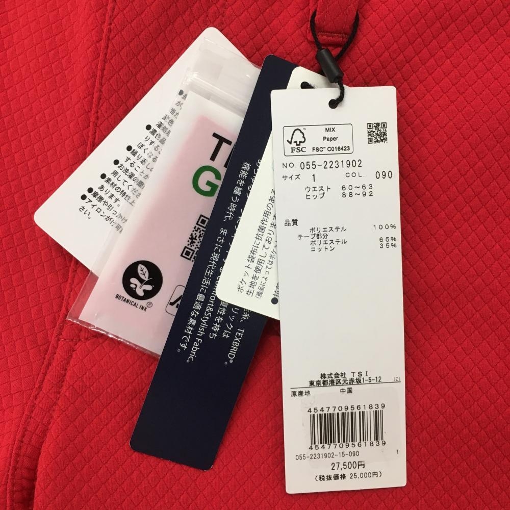 【新品】パーリーゲイツ パンツ レッド 織生地 ストレッチ レディース 1(M) ゴルフウェア PEARLY GATES