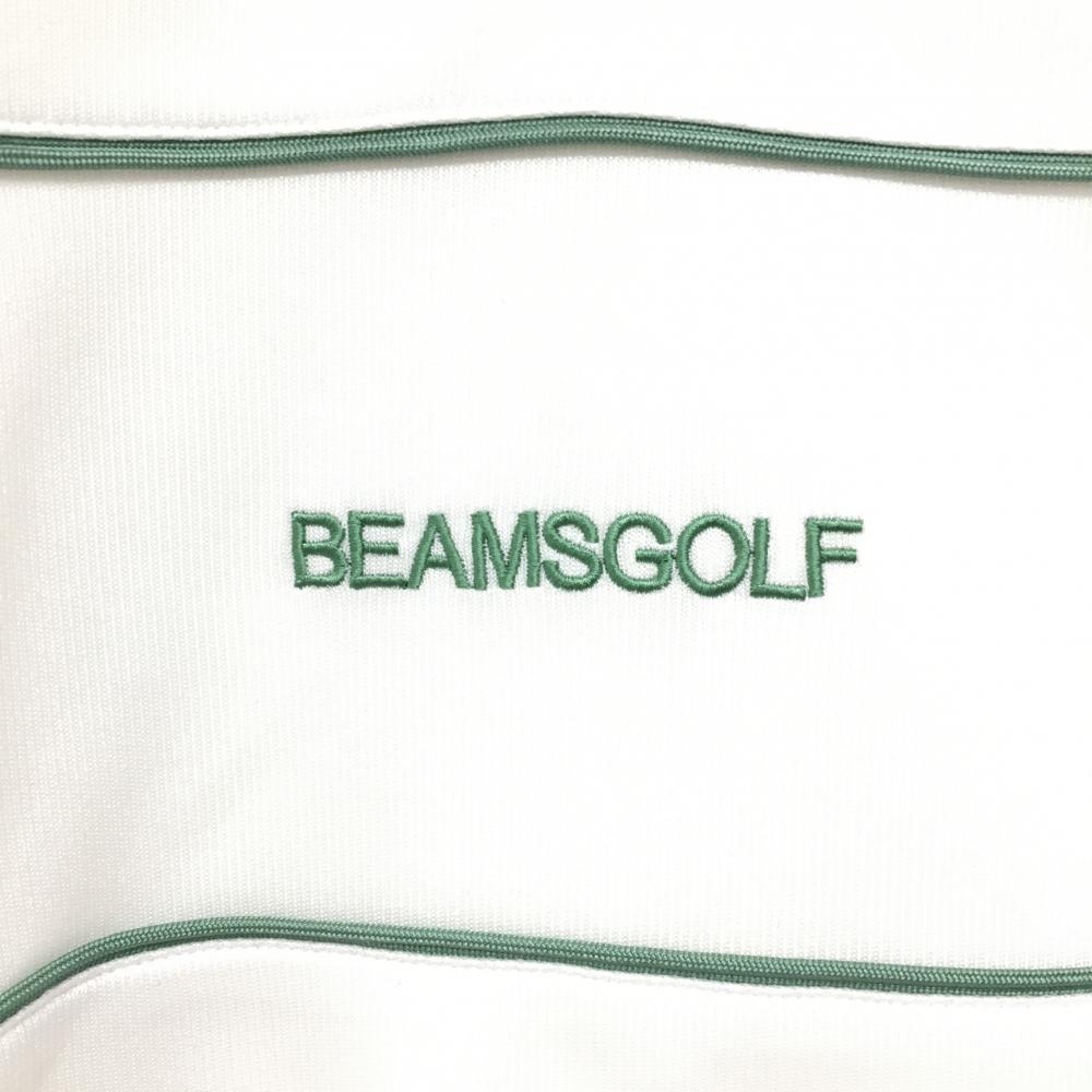 【超美品】ビームスゴルフ ハイネックトレーナー 白×スモーキーグリーン系 ハーフジップ メンズ L ゴルフウェア 2023年モデル BEAMS GOLF