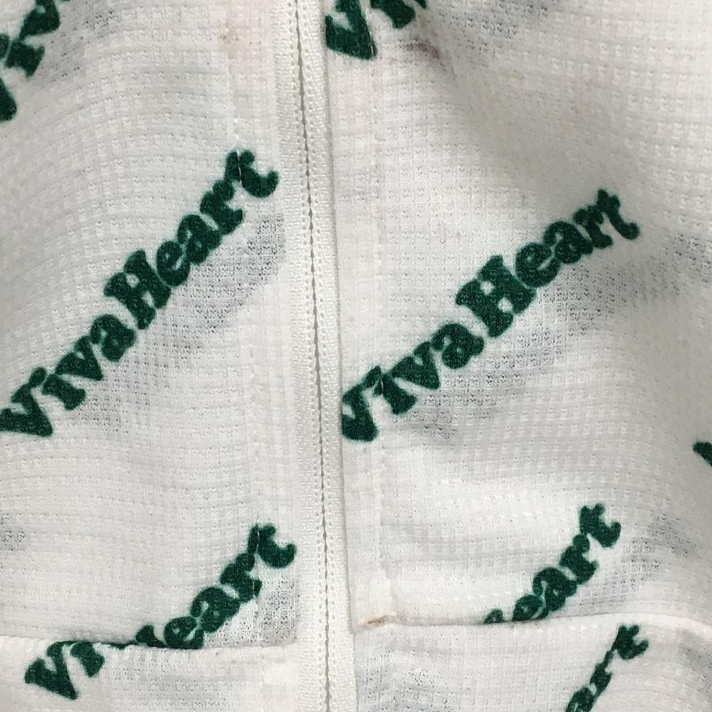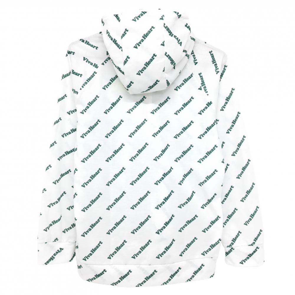【美品】ビバハート ジップパーカー 白×グリーン ロゴ総柄 ブルゾン レディース 40(M) ゴルフウェア VIVA HEART