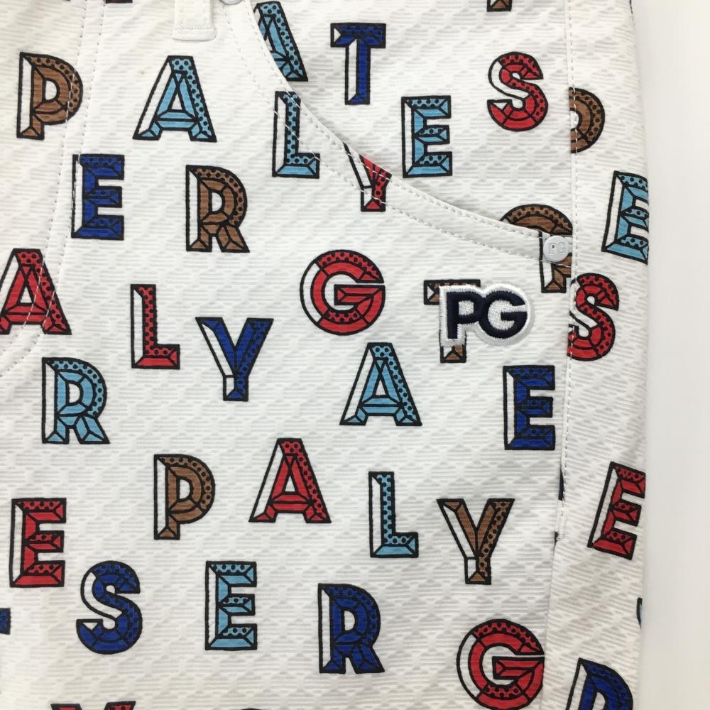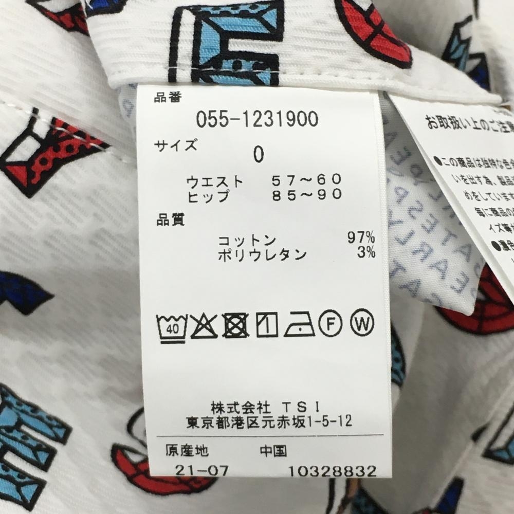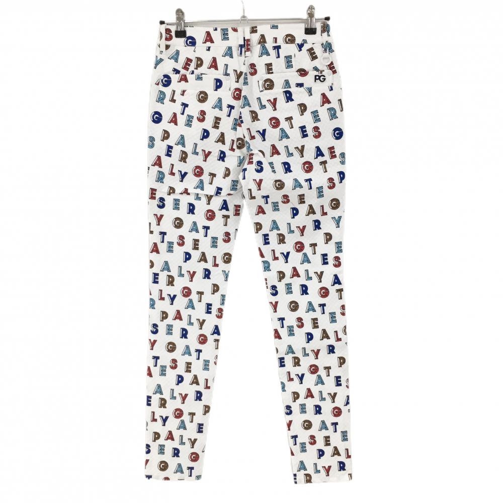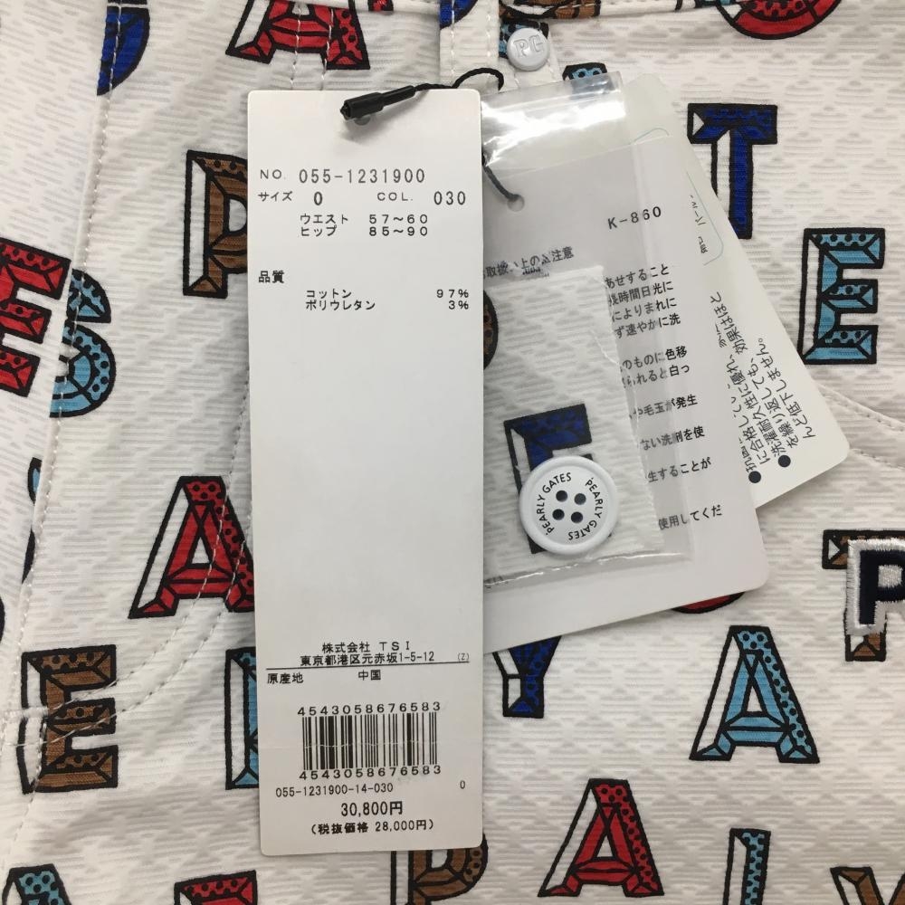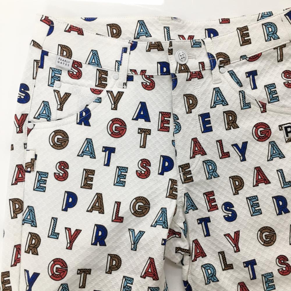 【新品】パーリーゲイツ パンツ 白×レッド×ブルー ロゴ総柄 織生地 ストレッチ レディース 0(S) ゴルフウェア PEARLY GATES