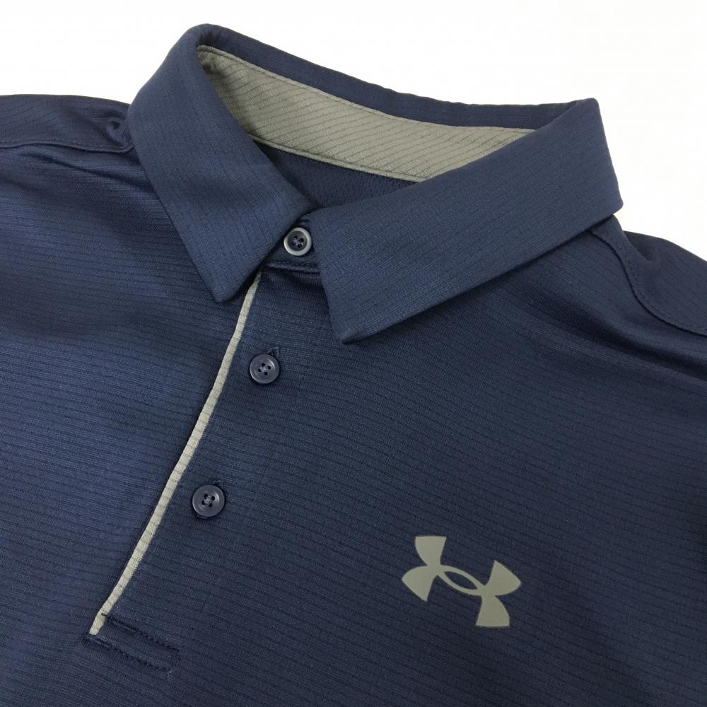 【超美品】アンダーアーマー 半袖ポロシャツ ネイビー ロゴグレー メンズ LG/G/G ゴルフウェア UNDER ARMOUR
