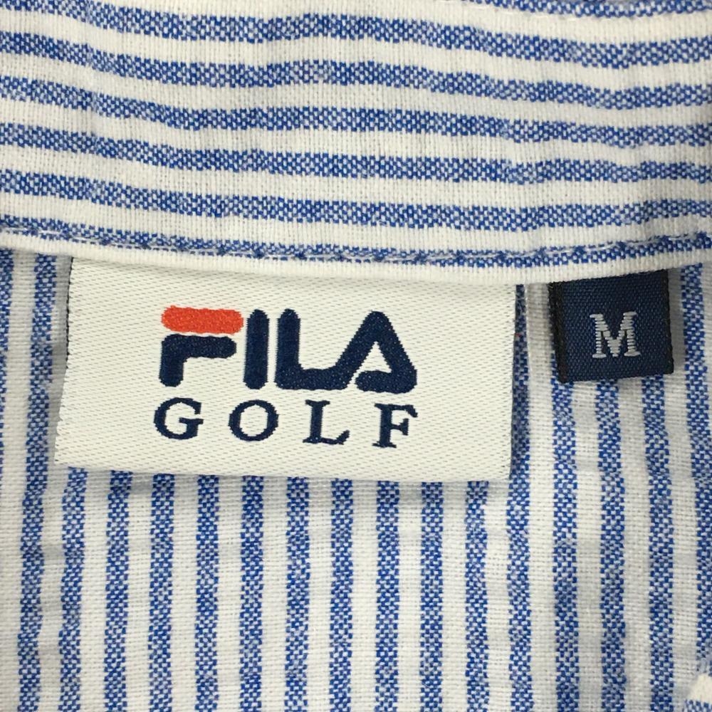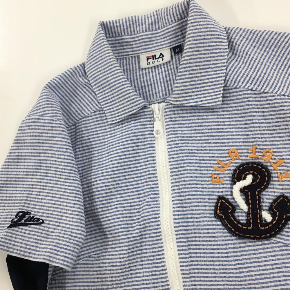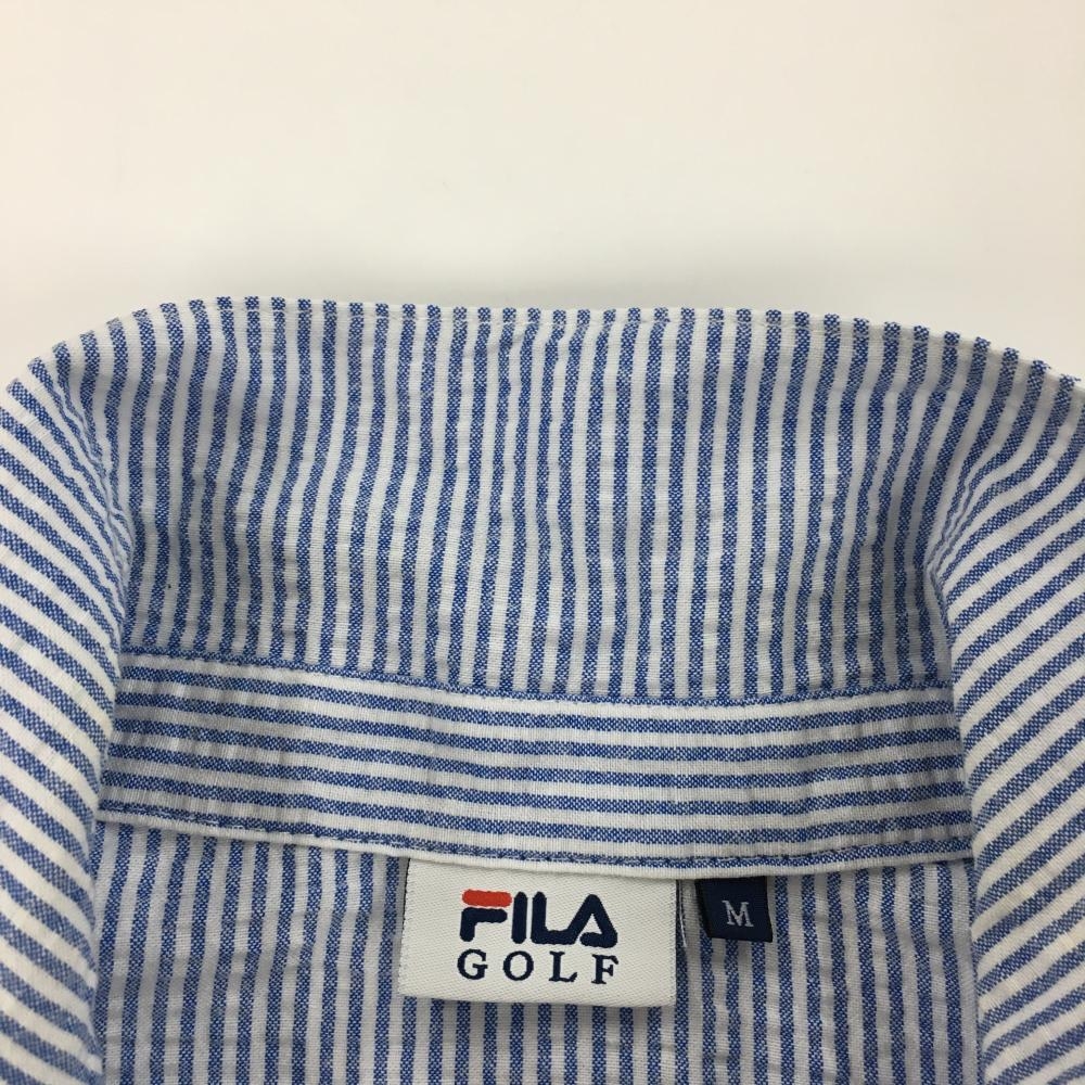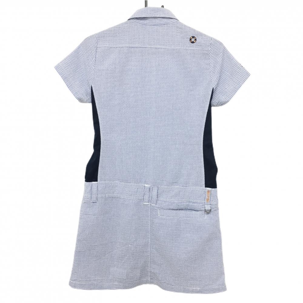 フィラゴルフ 半袖ポロワンピース ブルー×白 ボーダー ハーフジップ レディース M ゴルフウェア FILA GOLF