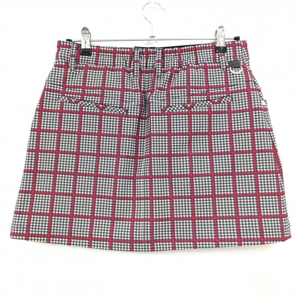 【美品】ルコックゴルフ スカート グレー×白×ピンク 千鳥格子 チェック 裏微起毛 レディース 11(L) ゴルフウェア le coq sportif
