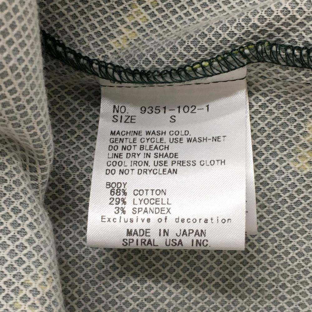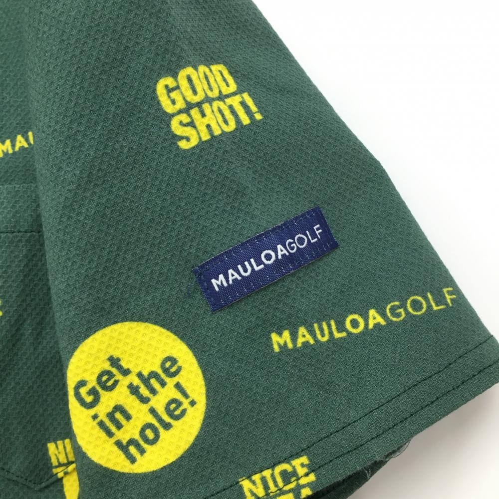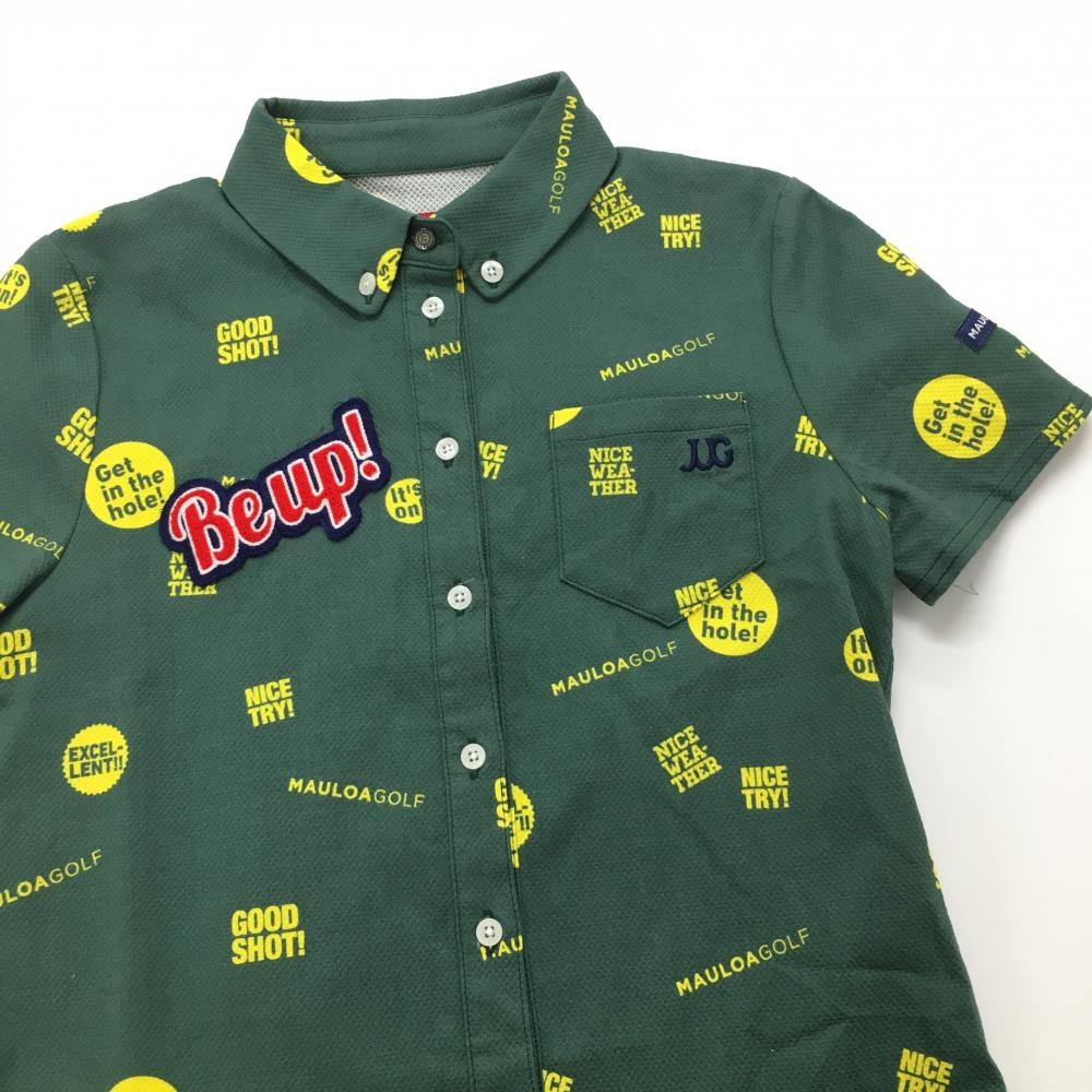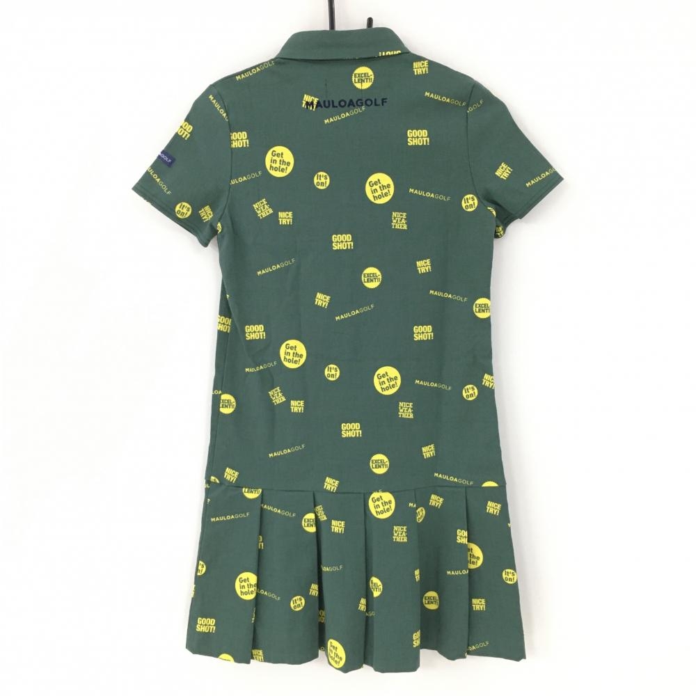 【美品】マウロアゴルフ 半袖ポロワンピース グリーン系×イエロー 総柄 プリーツ ボタンダウン レディース S ゴルフウェア MAULOA GOLF