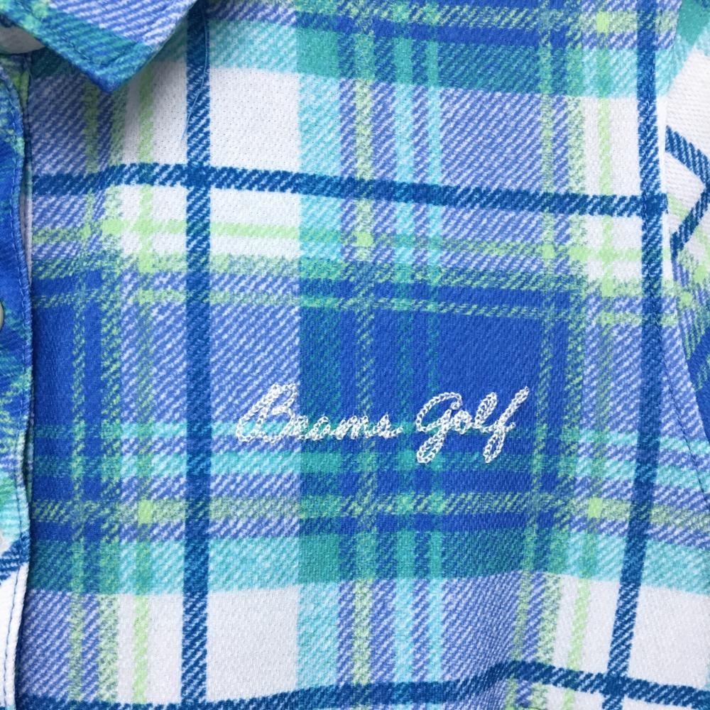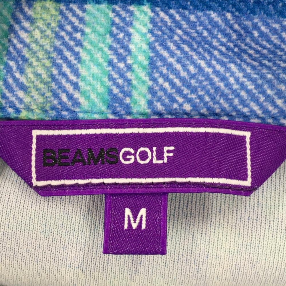 【超美品】ビームスゴルフ 半袖ポロワンピース ブルー×白 チェック レディース M ゴルフウェア BEAMS GOLF