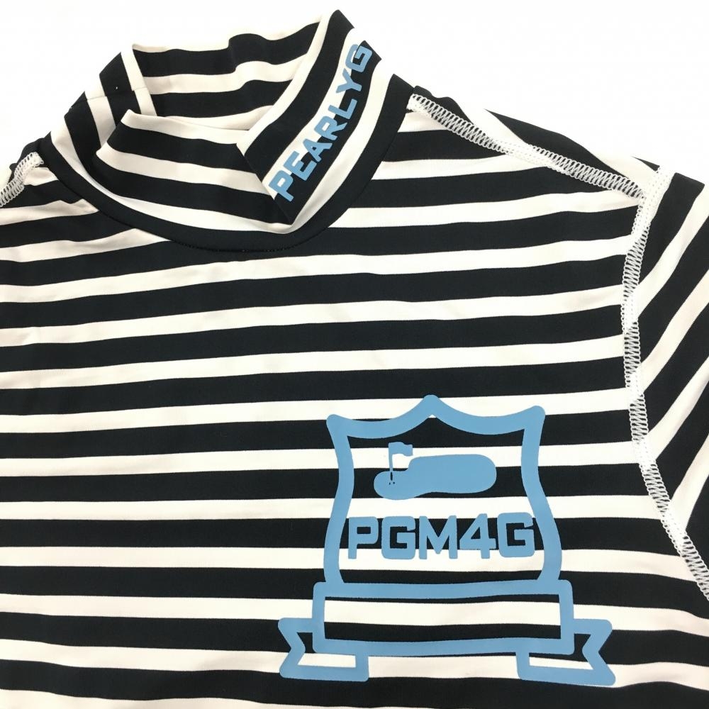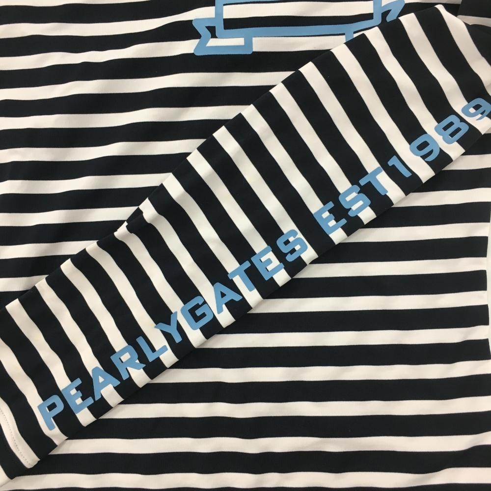 【美品】パーリーゲイツ ハイネックインナーシャツ ネイビー×白 ボーダー レディース 0(S) ゴルフウェア PEARLY GATES