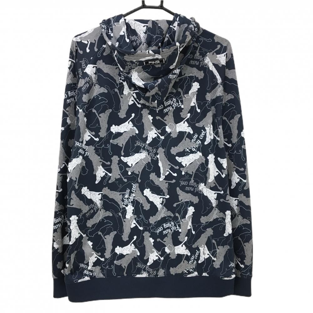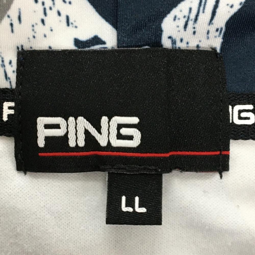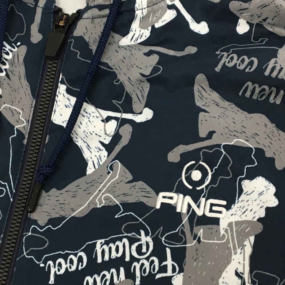 【美品】ピン ジップパーカー ネイビー×グレー 総柄 ロゴ刺しゅう メンズ LL ゴルフウェア PING