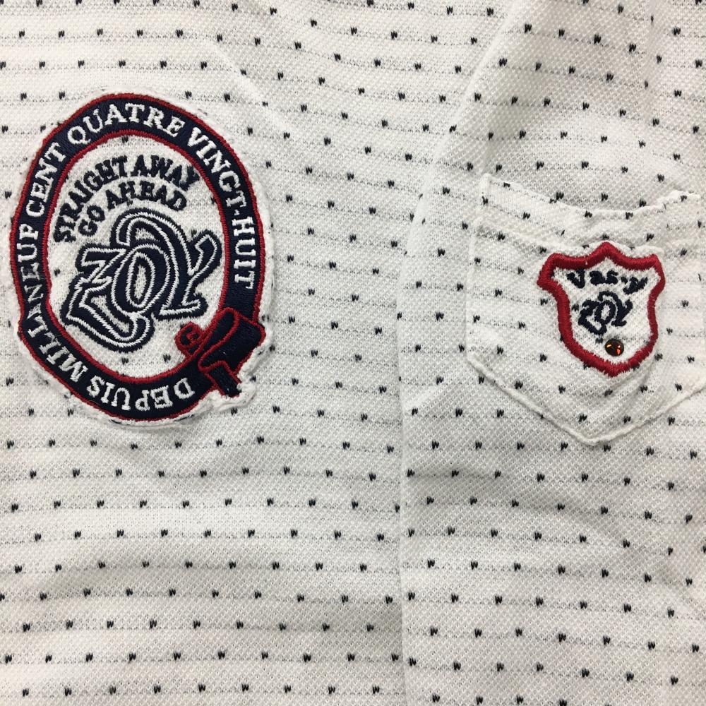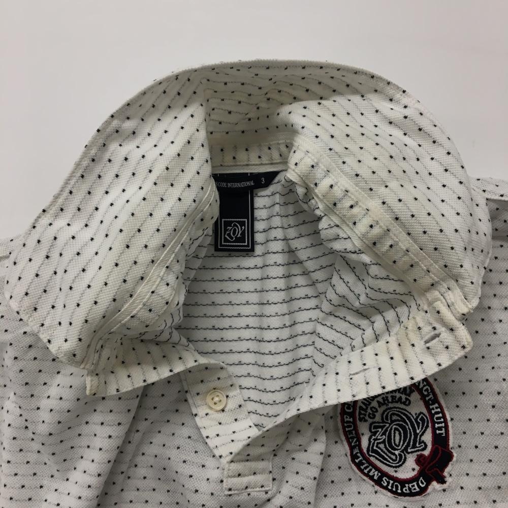 ゾーイ 長袖ポロシャツ 白×黒 ドット調 ロゴワッペン メンズ 3(L) ゴルフウェア ZOY