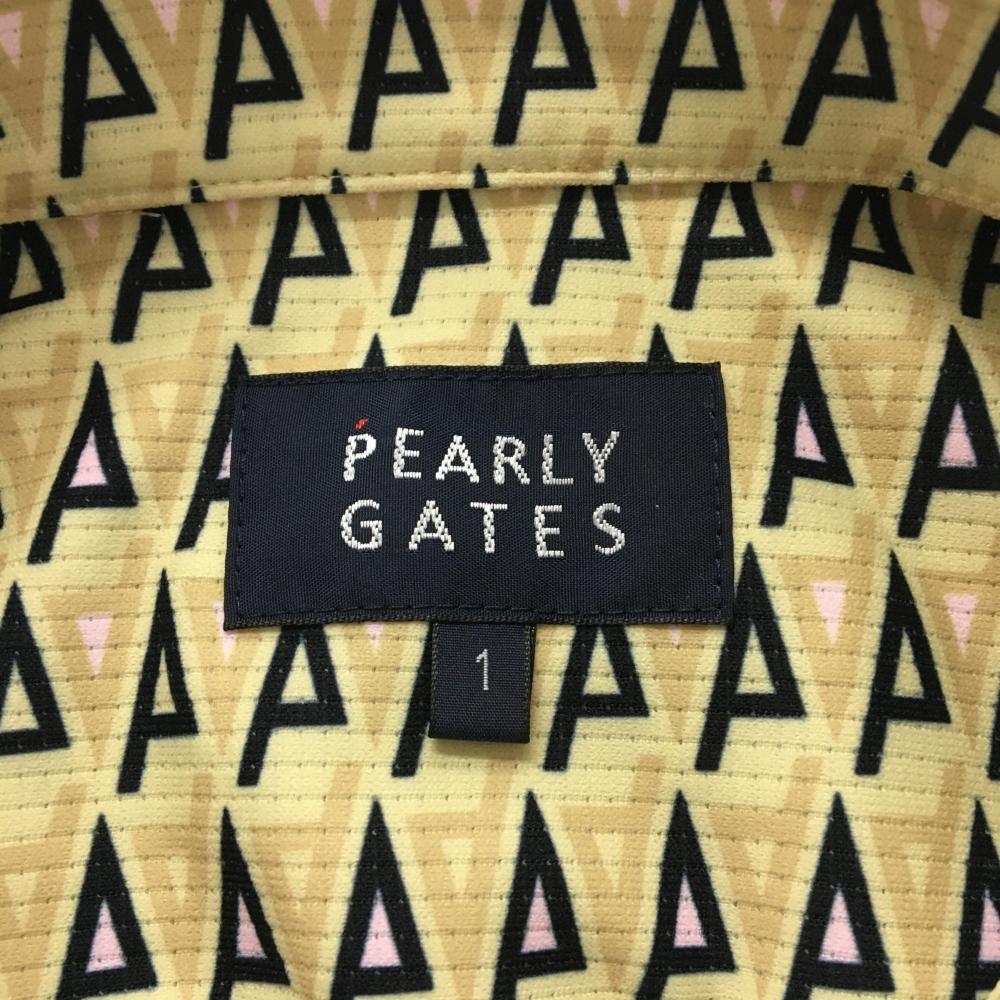 【超美品】パーリーゲイツ 半袖ポロシャツ ベージュ×ネイビー 総柄 ロゴ レディース 1(M) ゴルフウェア PEARLY GATES