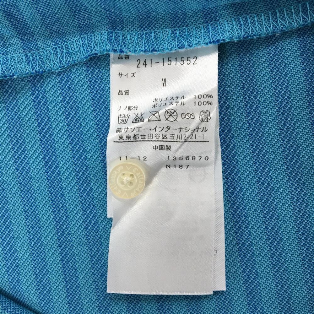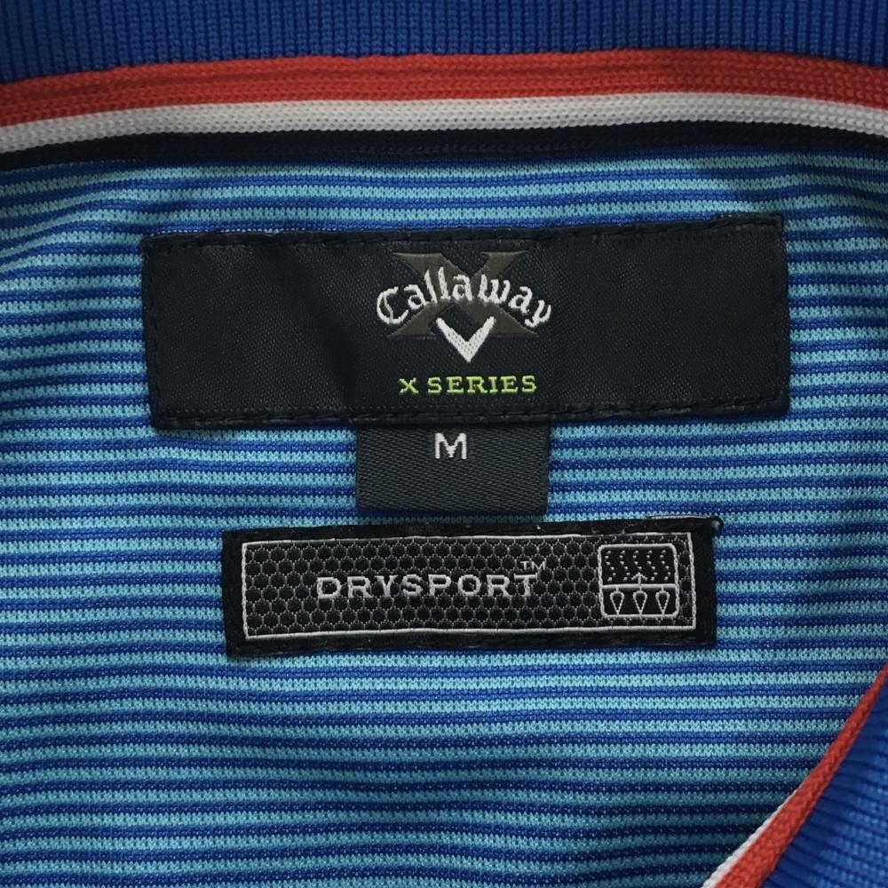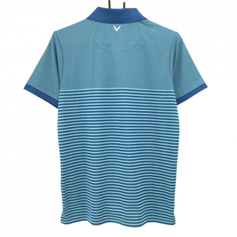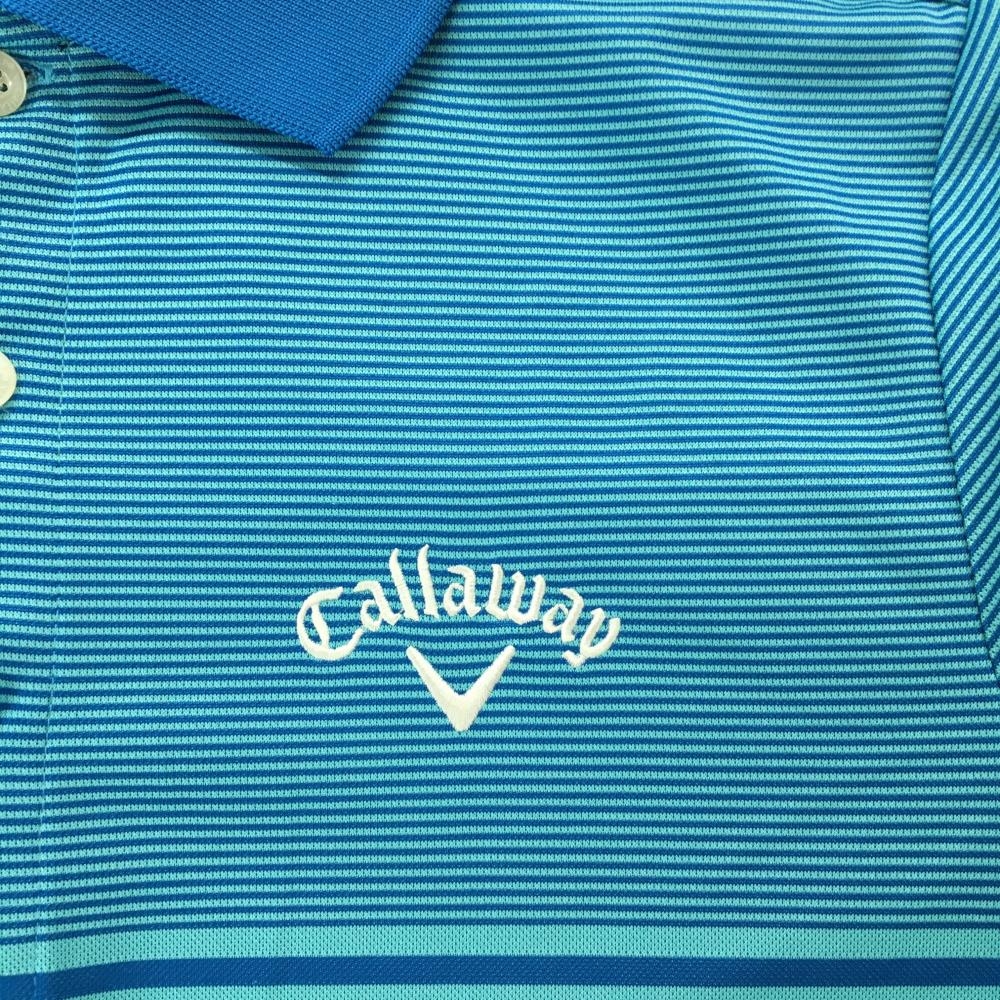 【超美品】キャロウェイ 半袖ポロシャツ ライトブルー×ブルー ボーダー ロゴ刺しゅう メンズ M ゴルフウェア Callaway