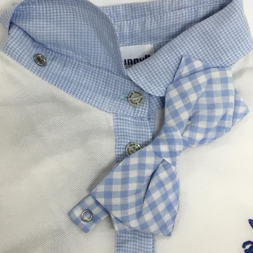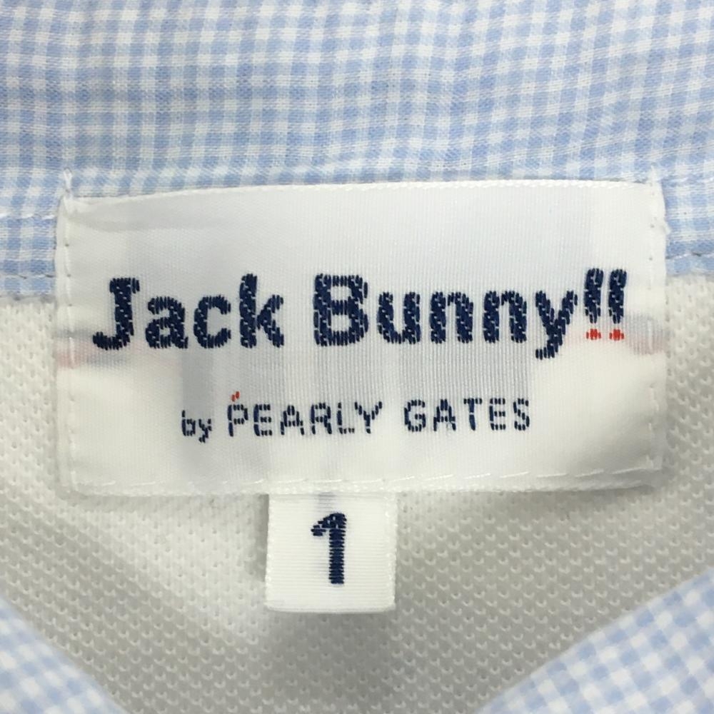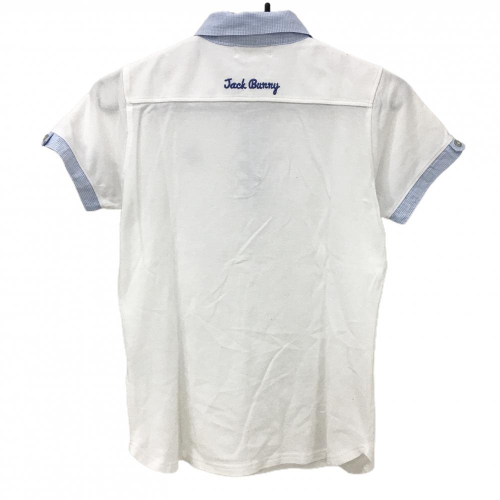 ジャックバニー 半袖ポロシャツ 白×ライトブルー 襟袖口チェック リボン着脱可 レディース 1(M) ゴルフウェア Jack Bunny