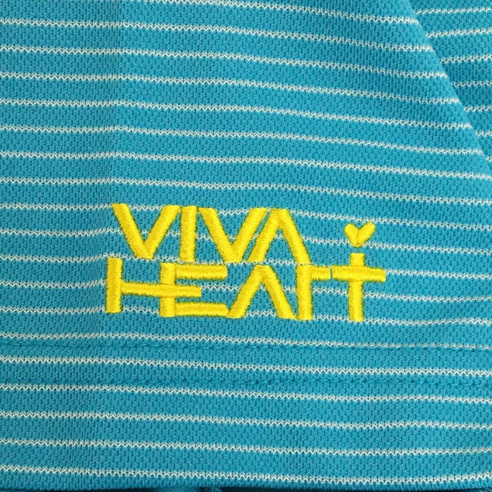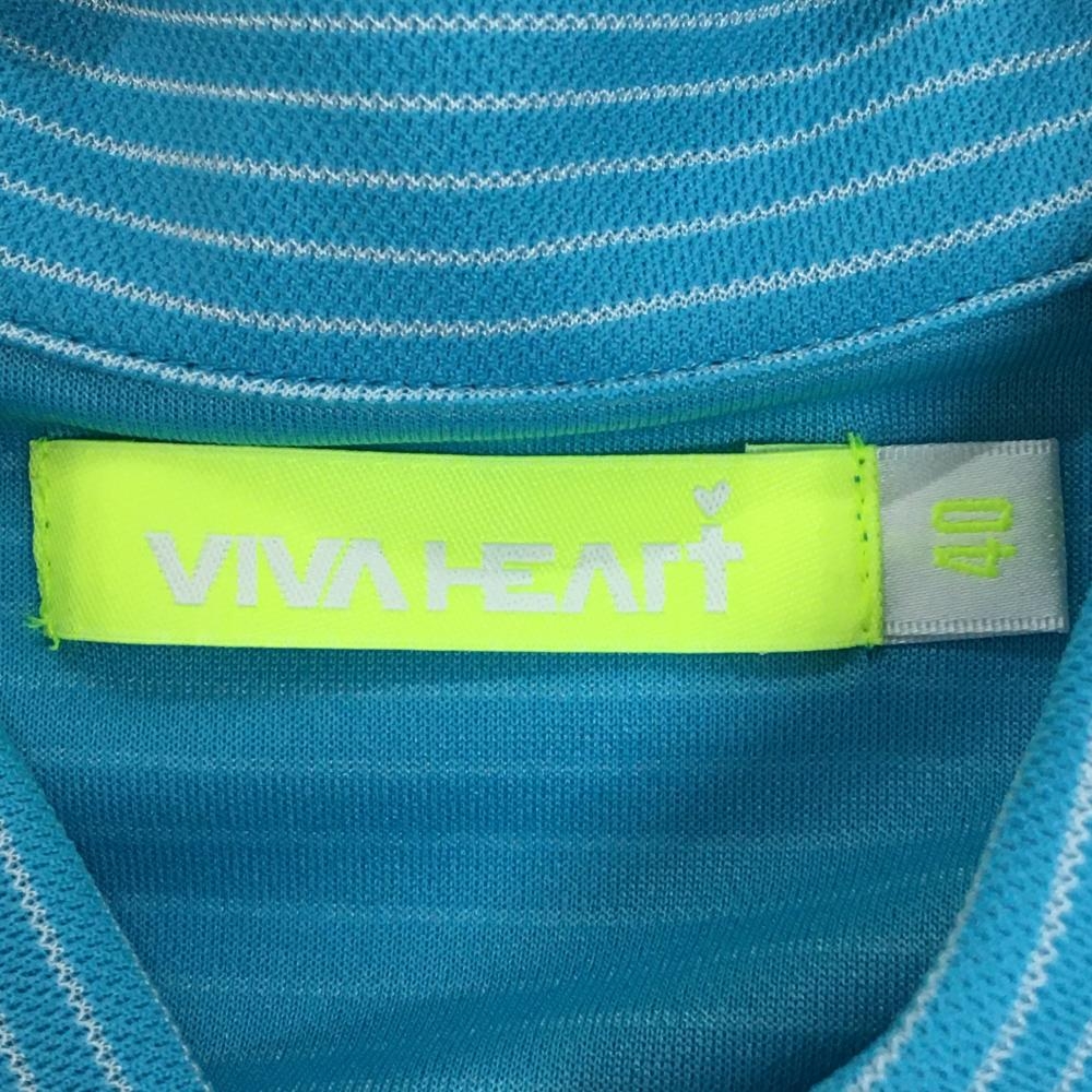 【超美品】ビバハート 半袖ポロシャツ ライトブルー×白 ボーダー レディース 40(M) ゴルフウェア VIVA HEART