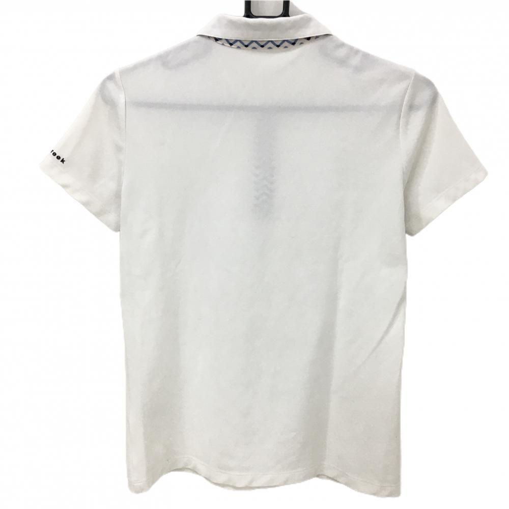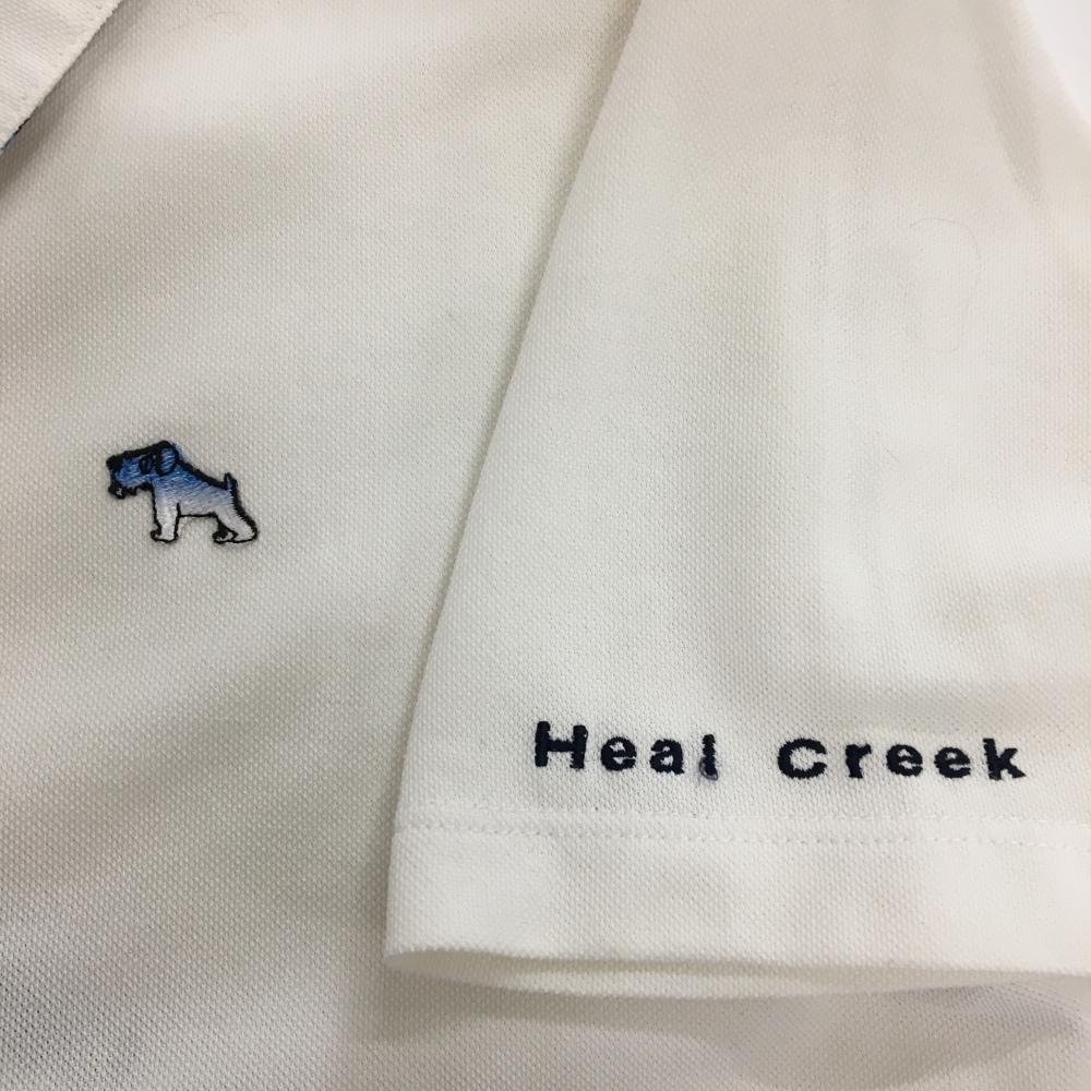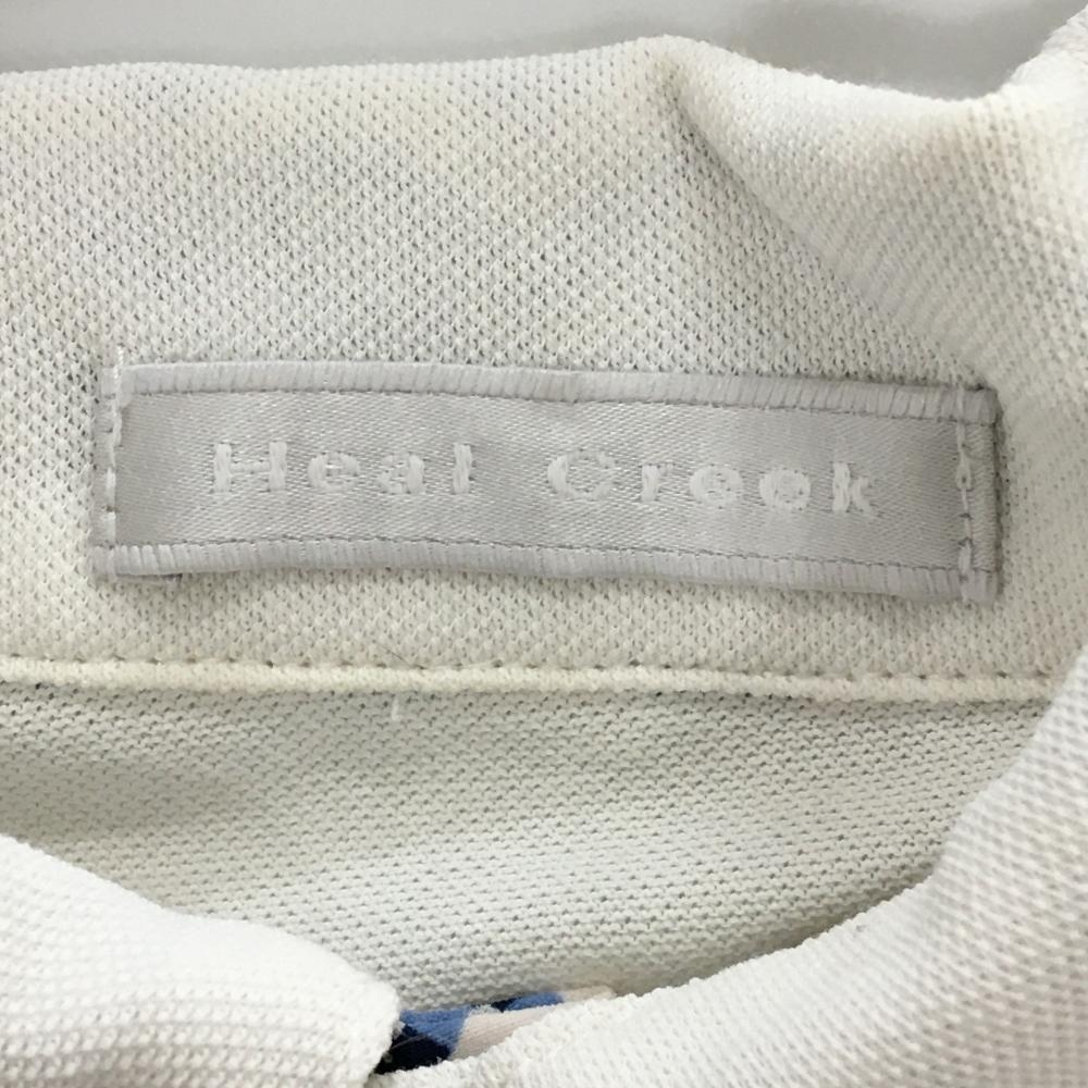 ヒールクリーク 半袖ポロシャツ 白 襟裏・前立て内側総柄 レディース 40(M) ゴルフウェア Heal Creek