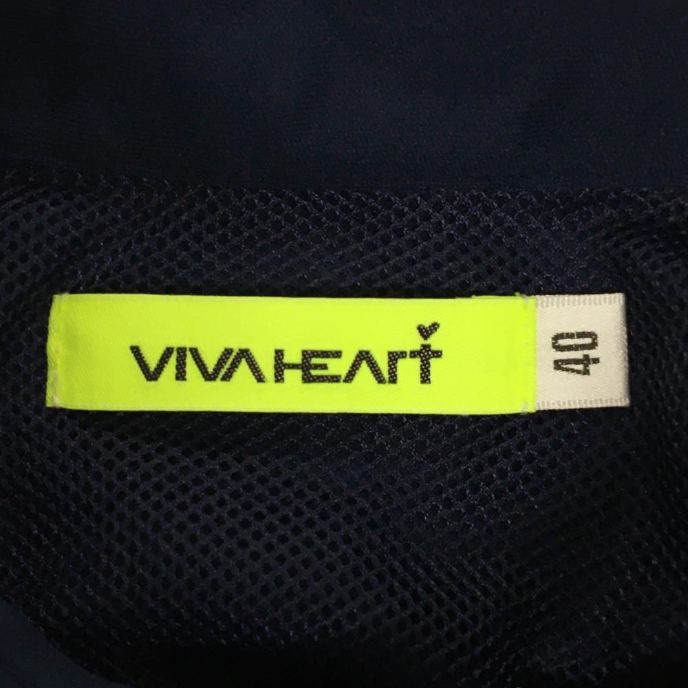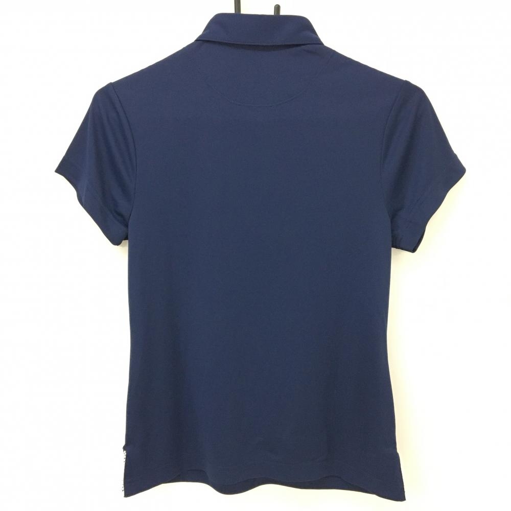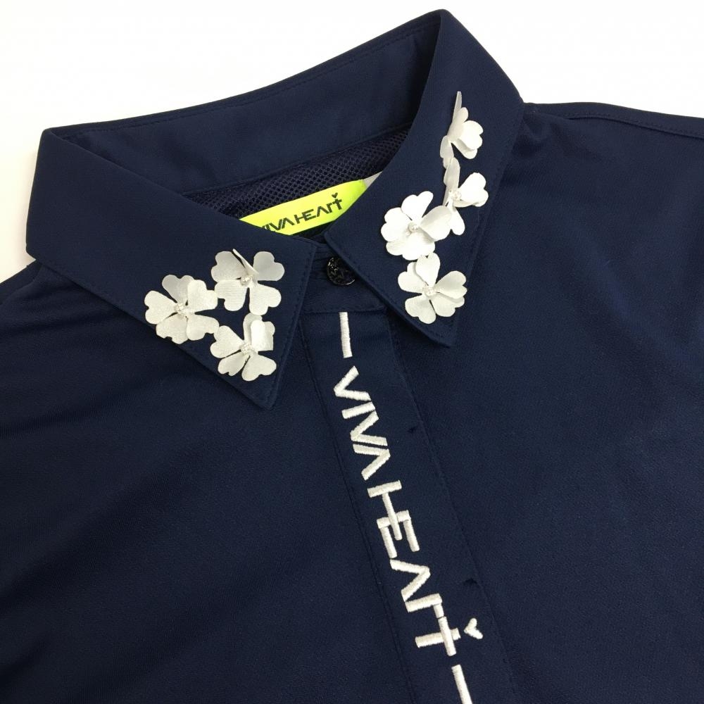 【超美品】ビバハート 半袖ポロシャツ ネイビー×白 襟花 レディース 40(M) ゴルフウェア VIVA HEART