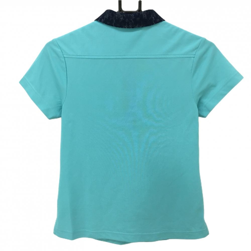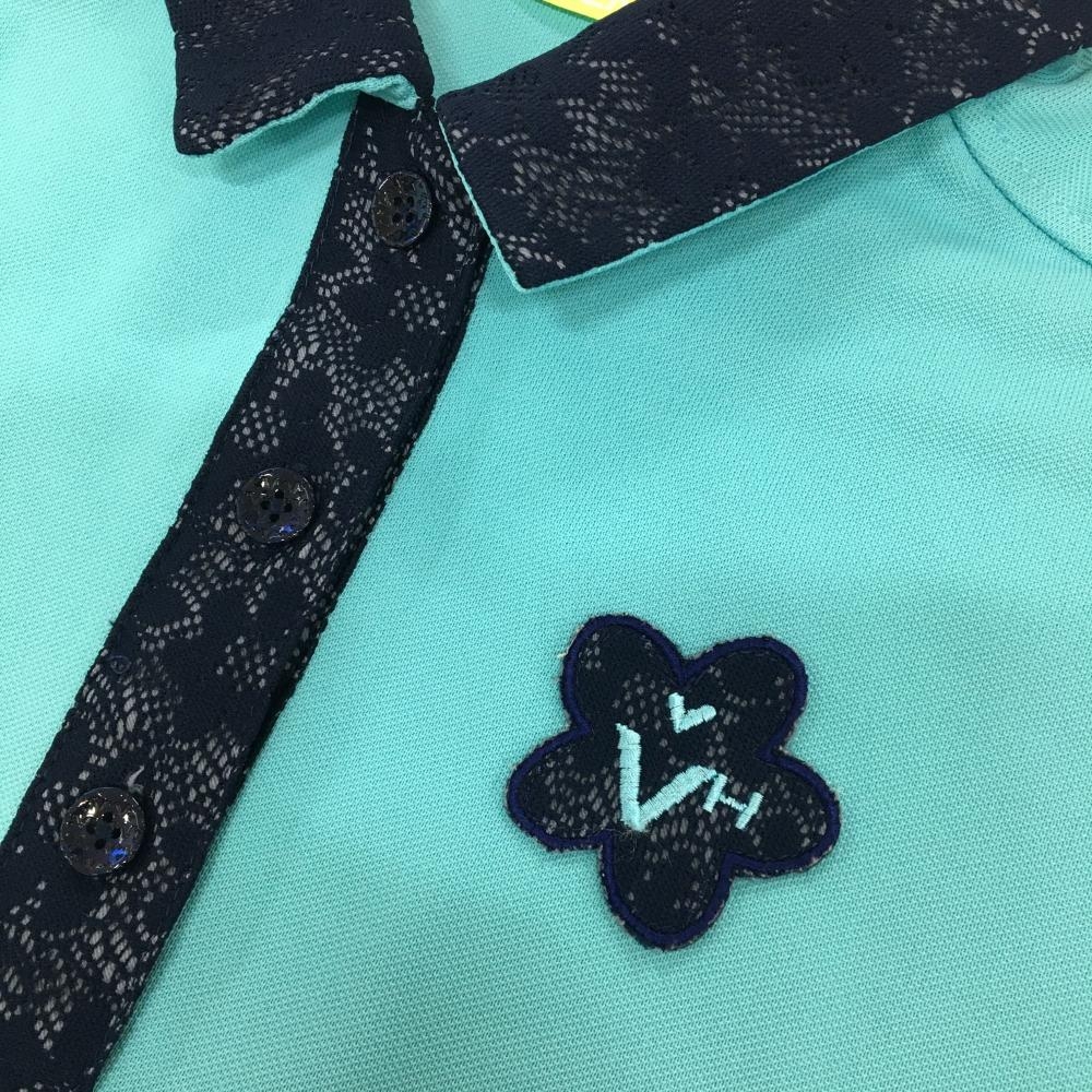 ビバハート 半袖ポロシャツ ライトグリーン×ネイビー 襟・前立てレース生地 レディース 40(M) ゴルフウェア VIVA HEART