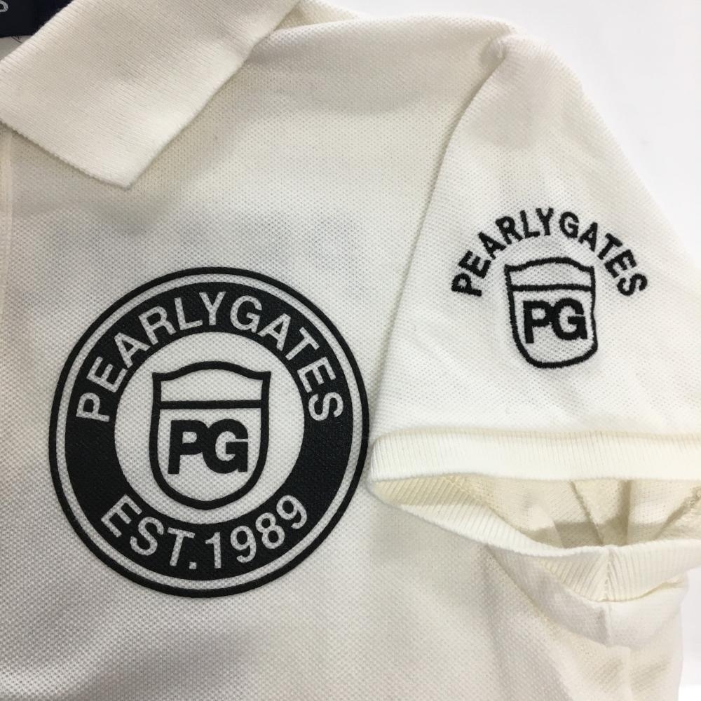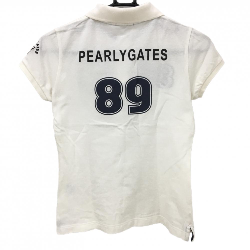 【超美品】パーリーゲイツ 半袖ポロシャツ 白×黒 背面プリント レディース 0(S) ゴルフウェア PEARLY GATES