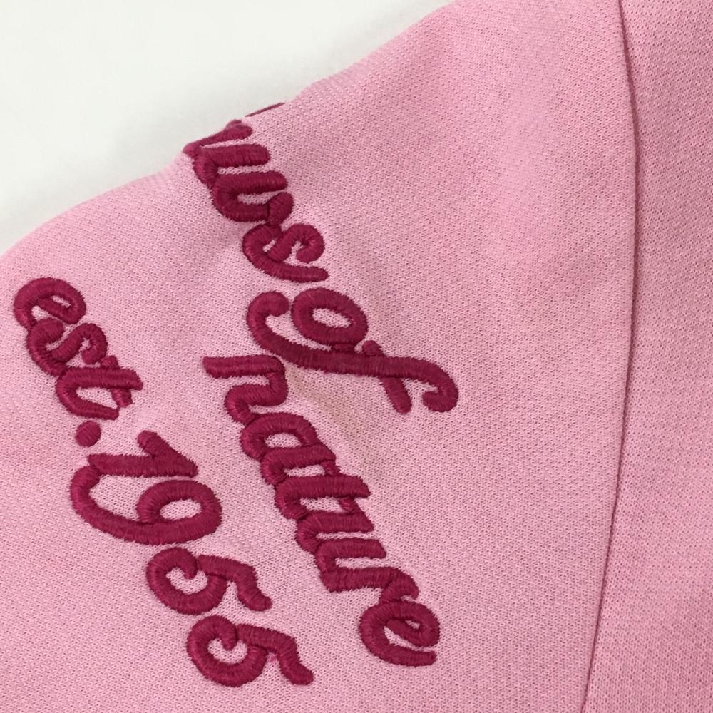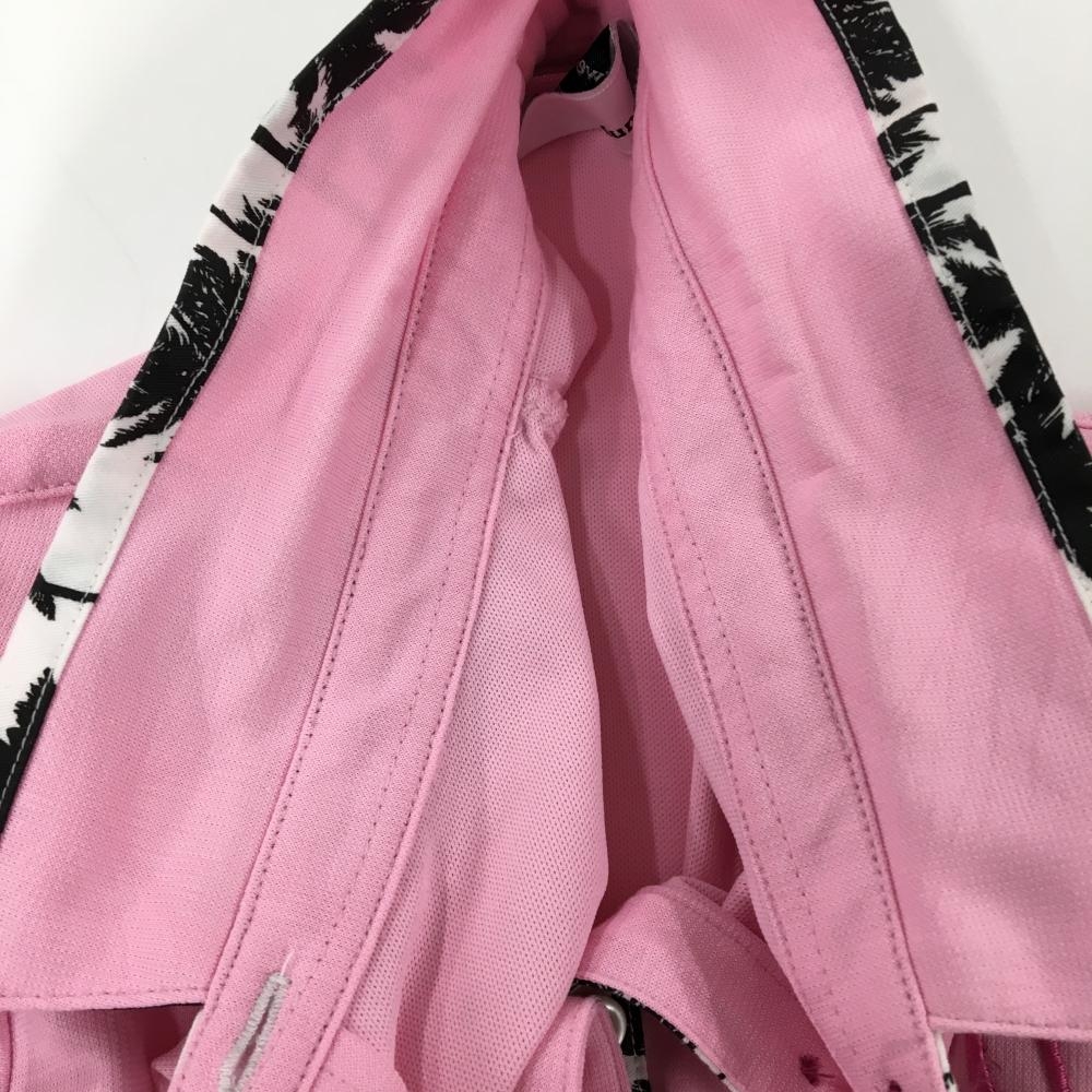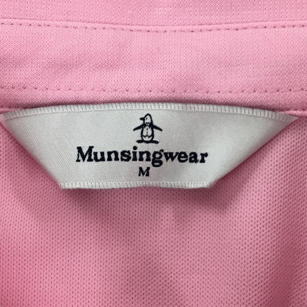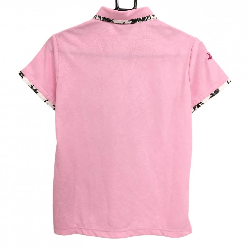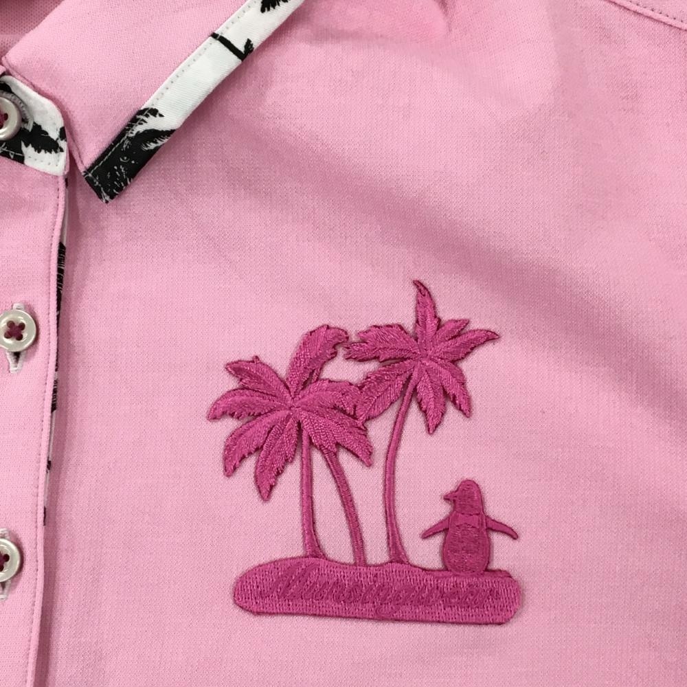 【美品】マンシングウェア 半袖ポロシャツ ピンク ヤシの木地模様 レディース M ゴルフウェア Munsingwear
