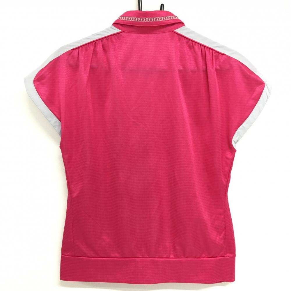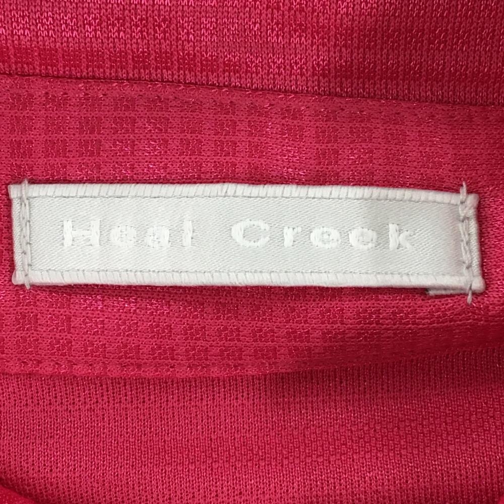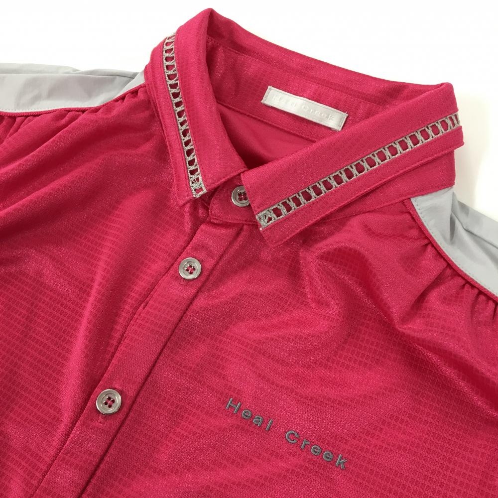 【超美品】ヒールクリーク 半袖シャツ ピンク×グレー 地模様 肩切替 レディース 40(M) ゴルフウェア Heal Creek