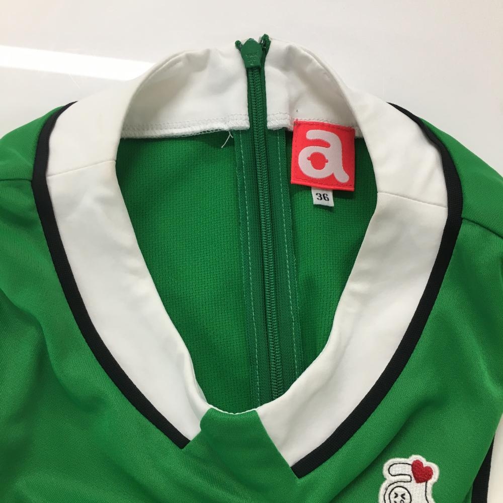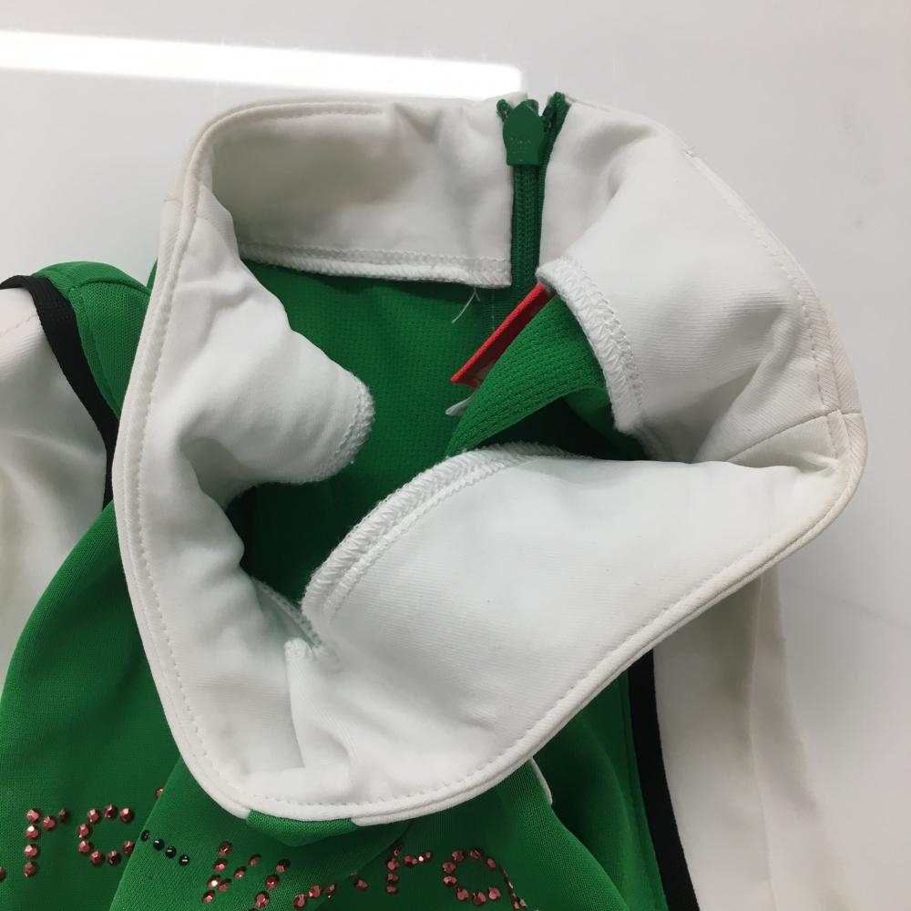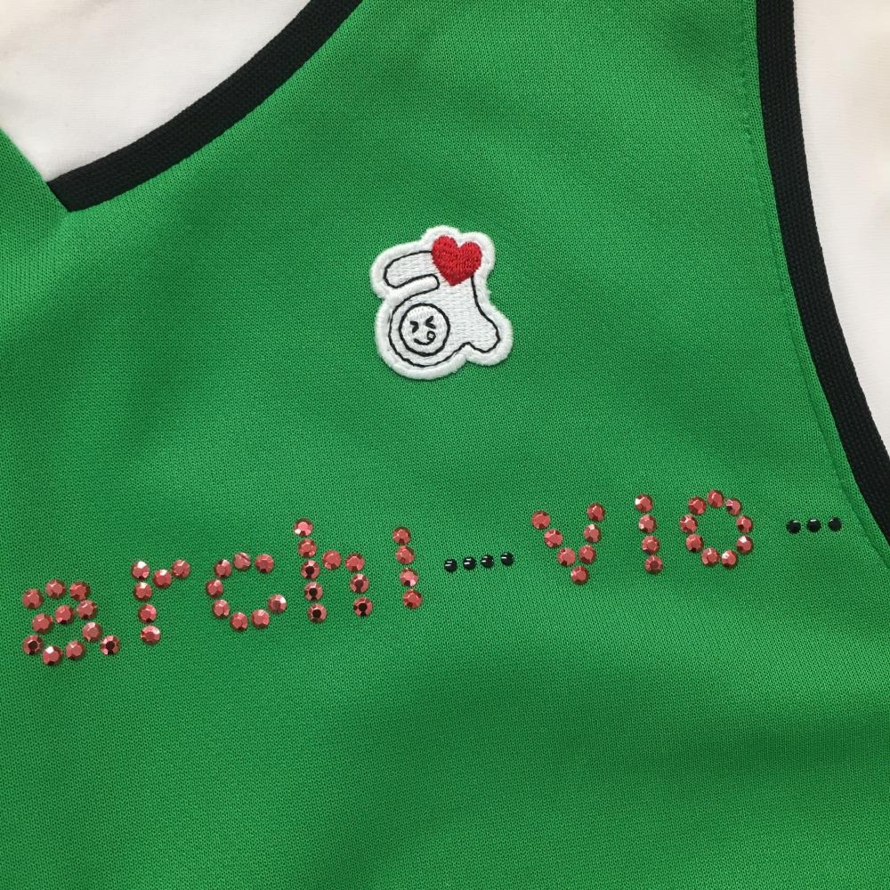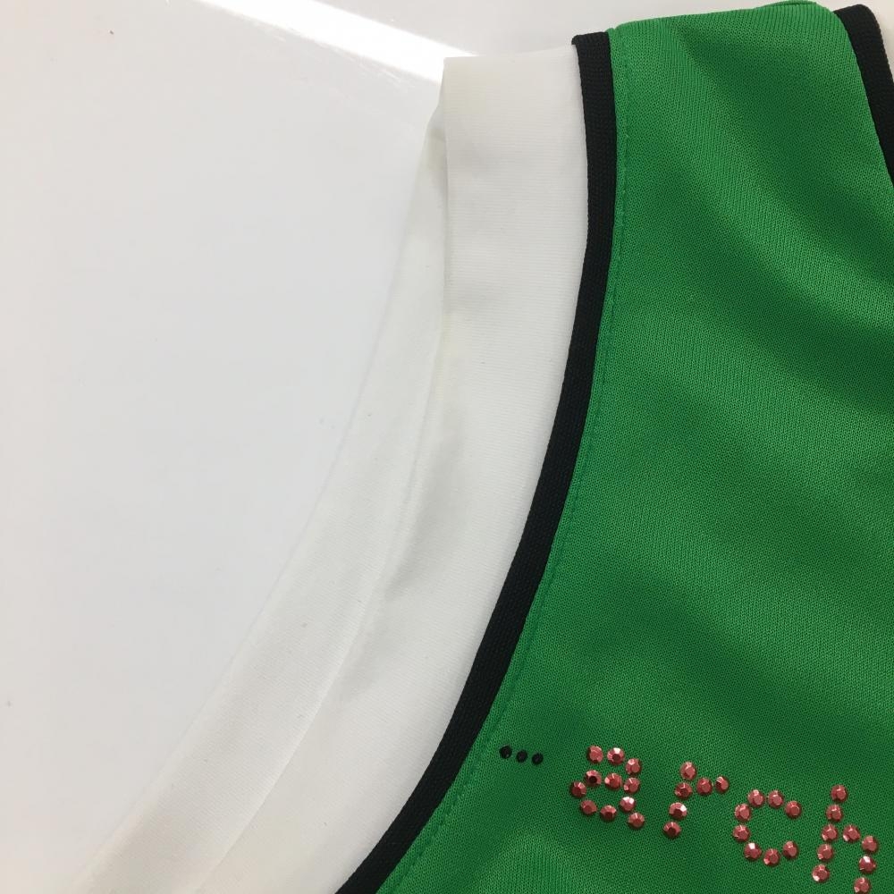 アルチビオ ノースリーブシャツ グリーン×白 後ジップ ラインストーン レディース 36(S) ゴルフウェア archivio