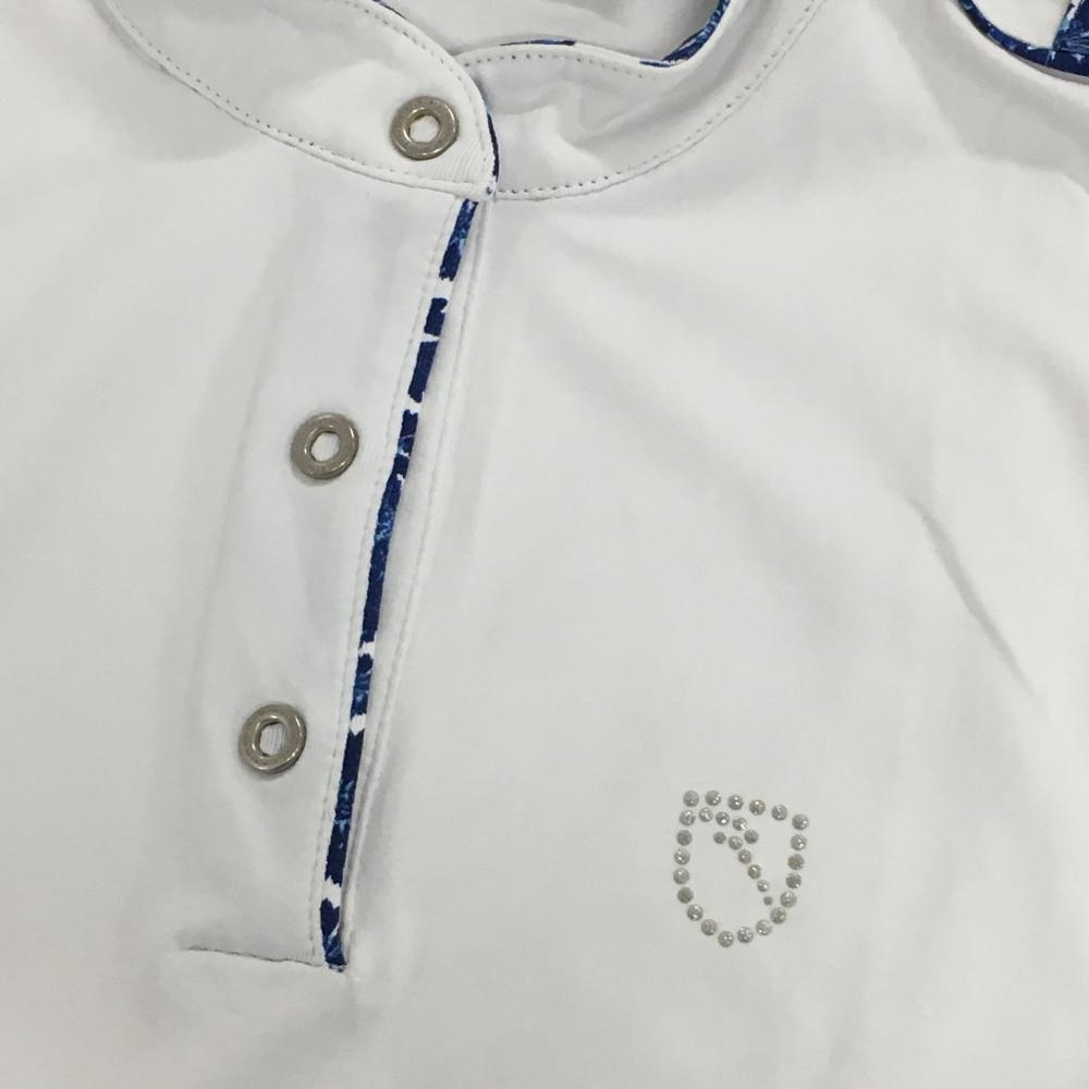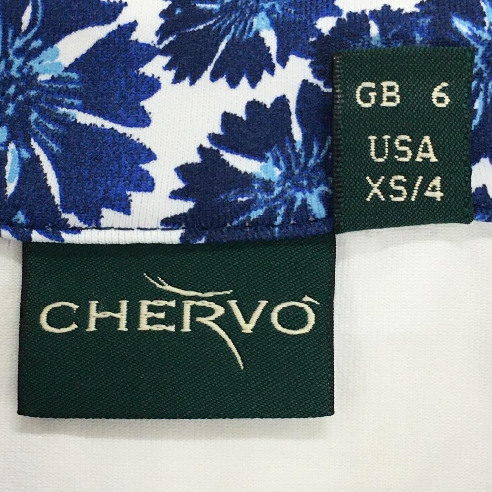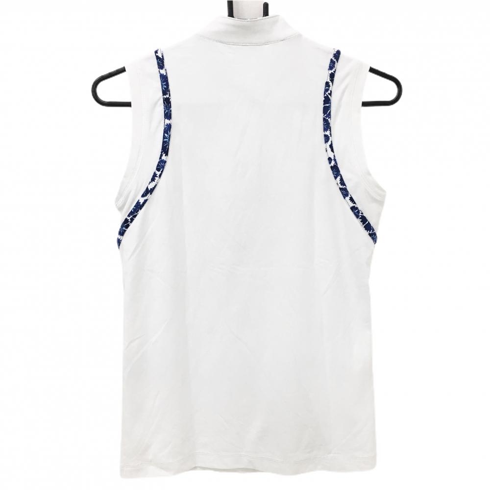 【超美品】シェルボ ノースリーブハイネックシャツ 白×ネイビー ネック裏花柄 レディース USA-XS 4 ゴルフウェア CHERVO