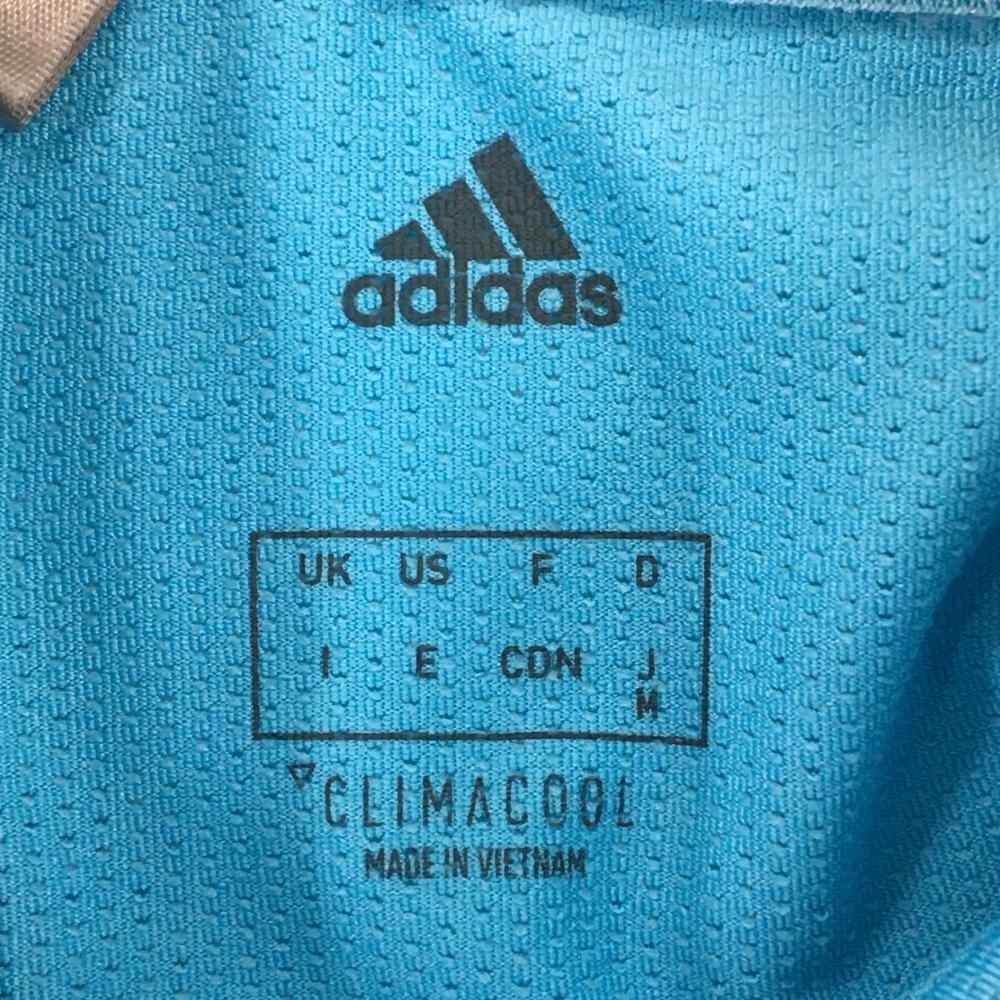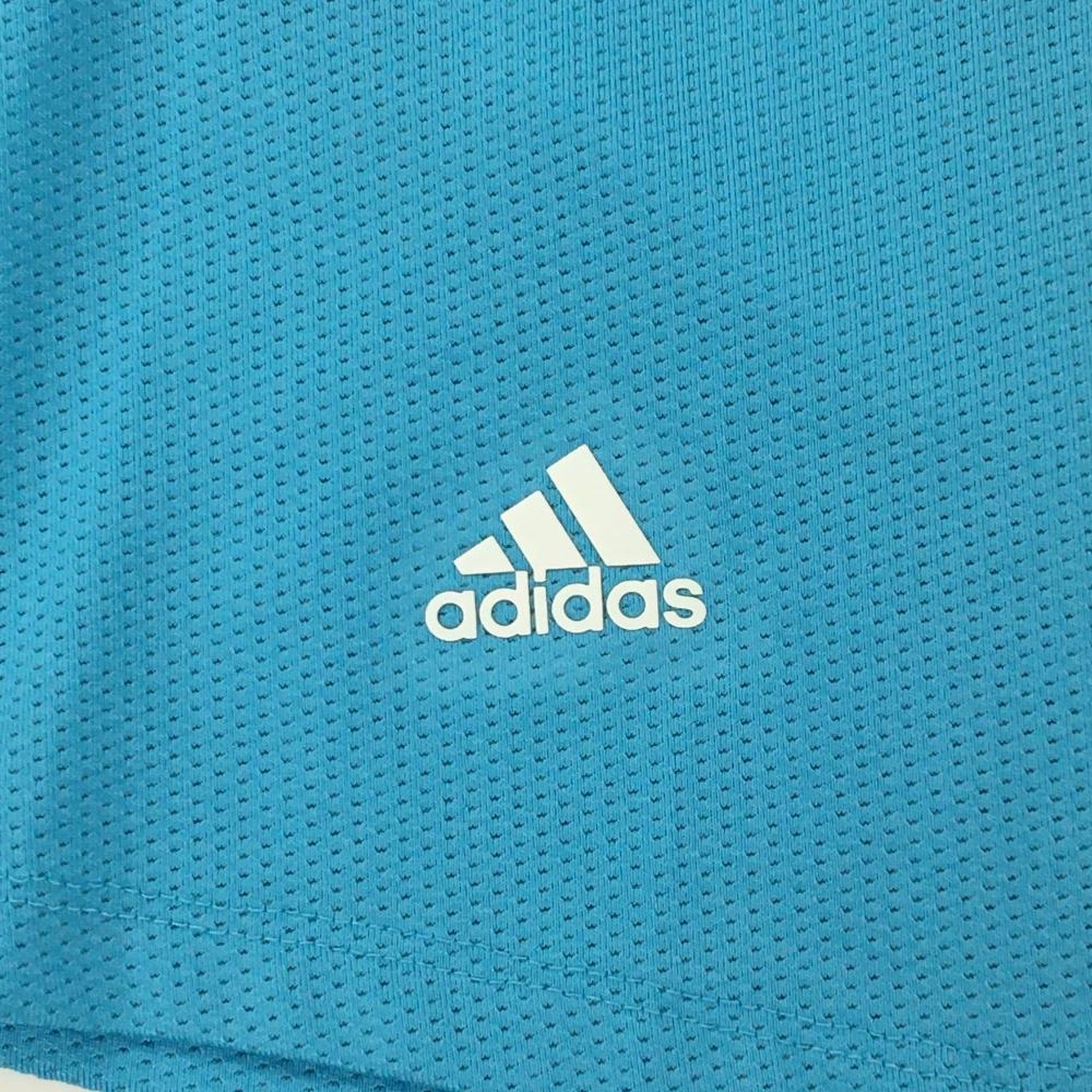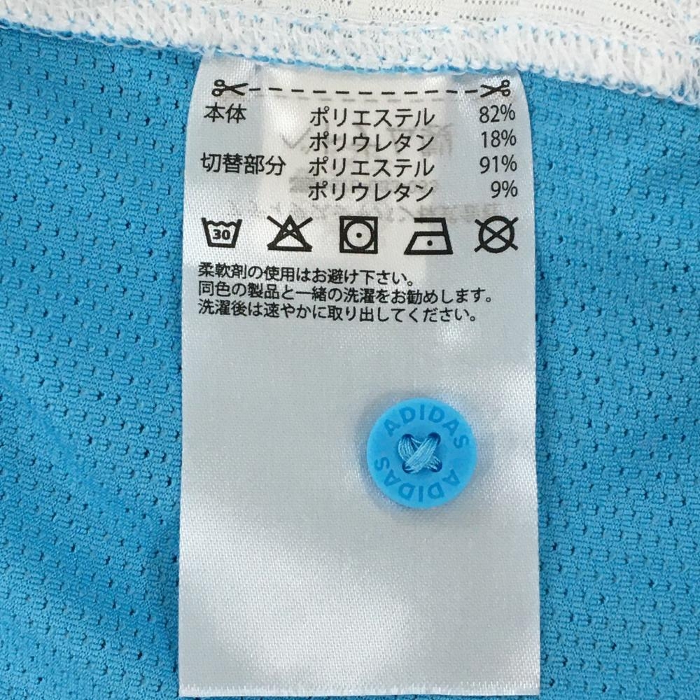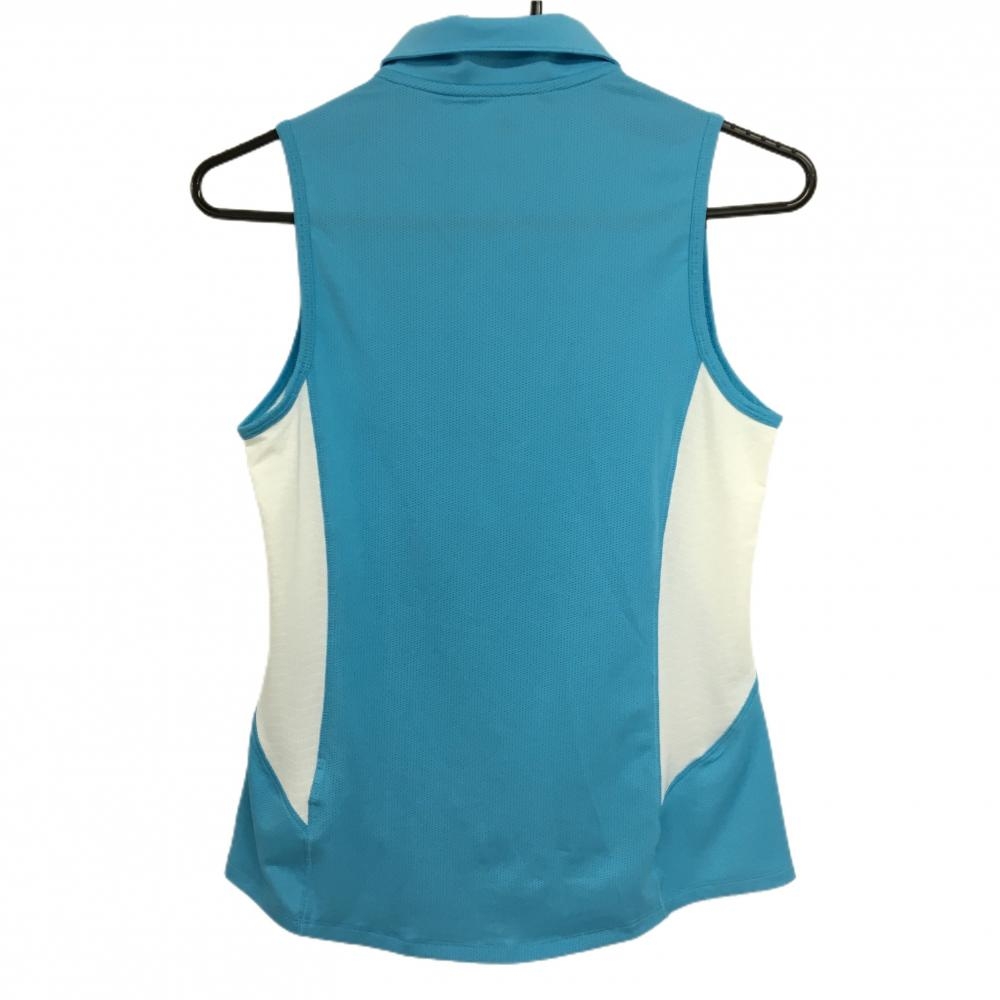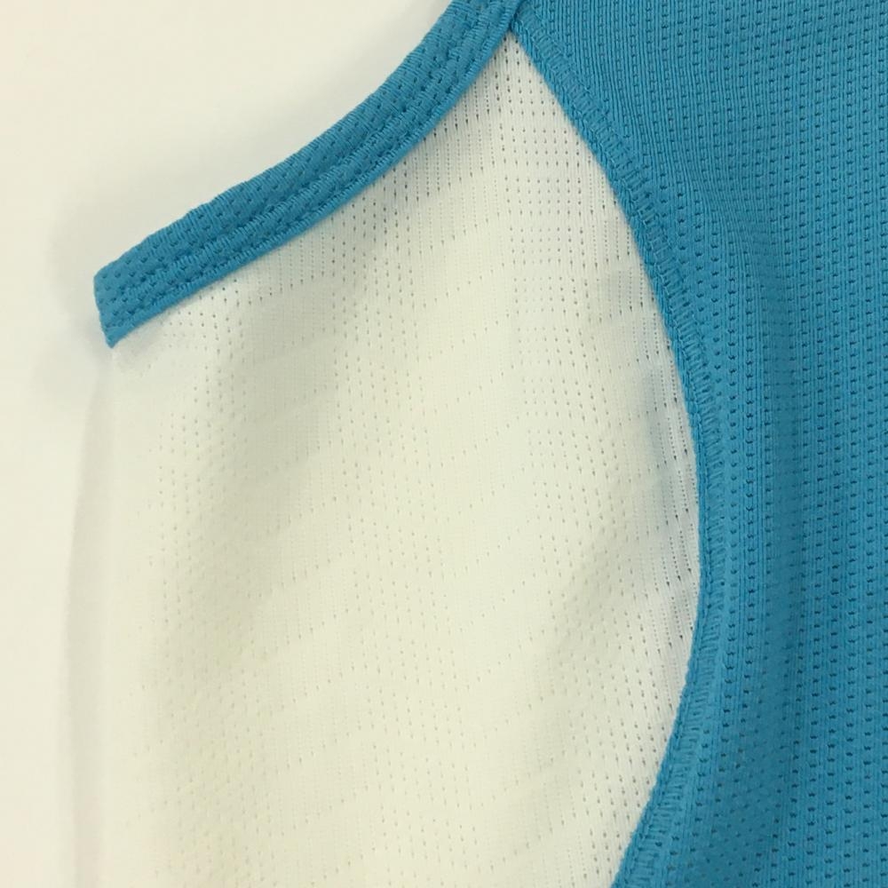 【超美品】アディダス ノースリーブポロシャツ ライトブルー×白 メッシュ風 サイド切替 レディース M ゴルフウェア adidas