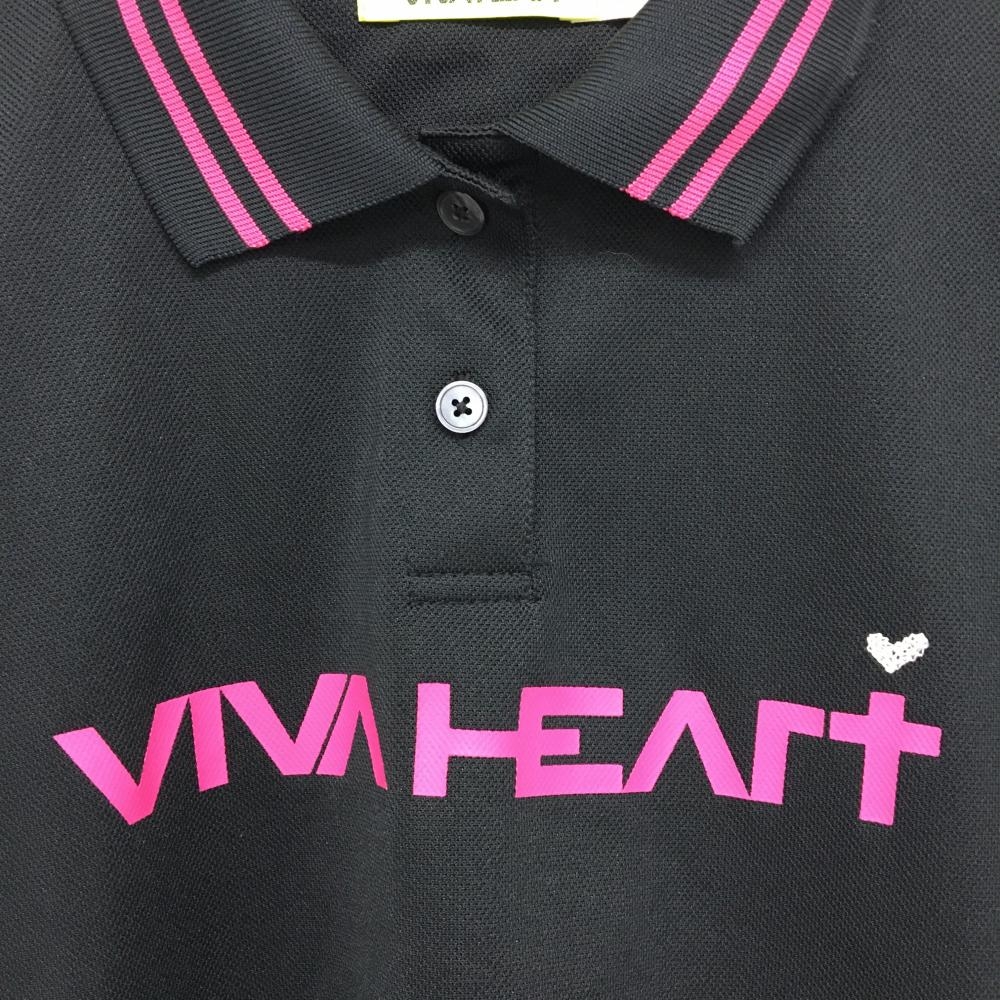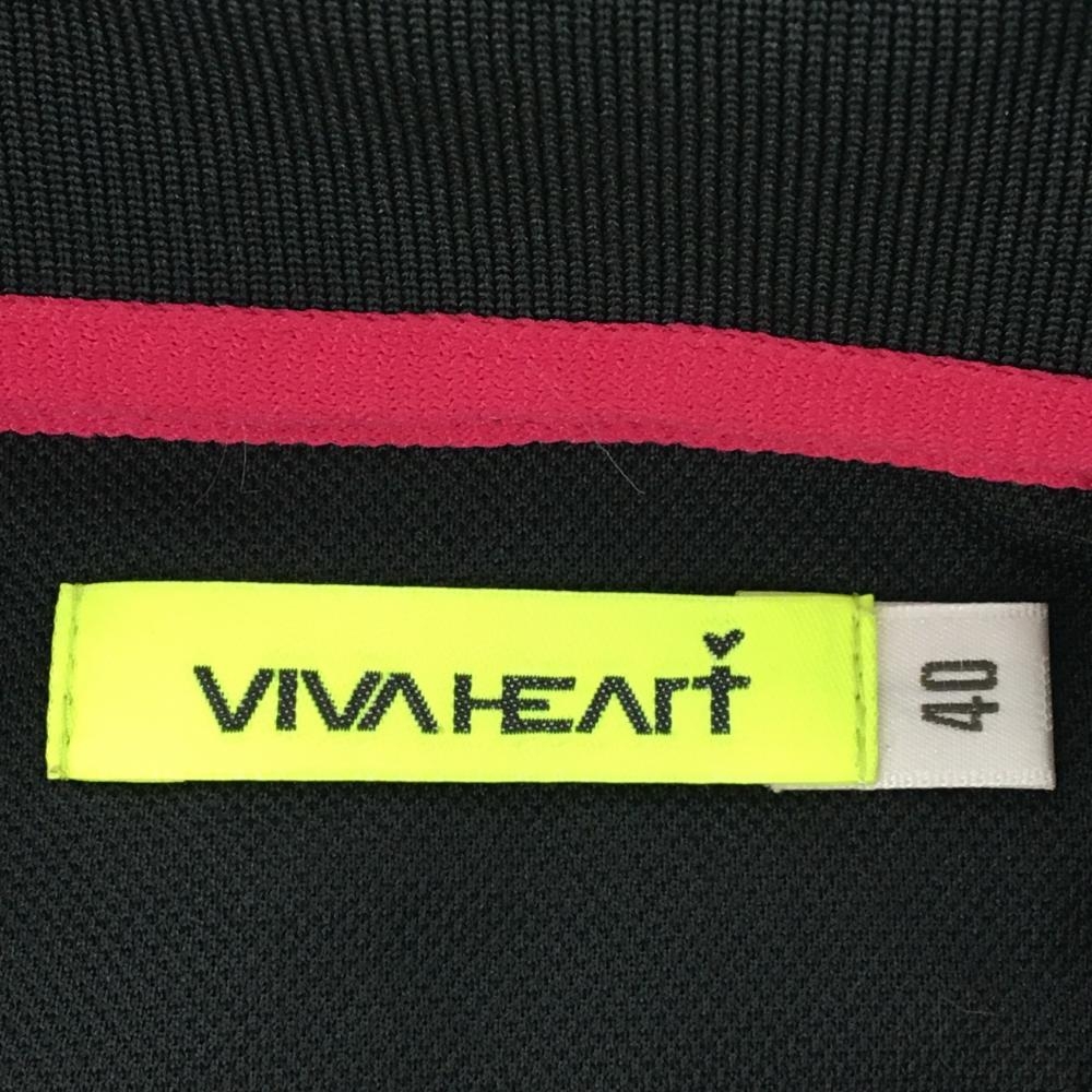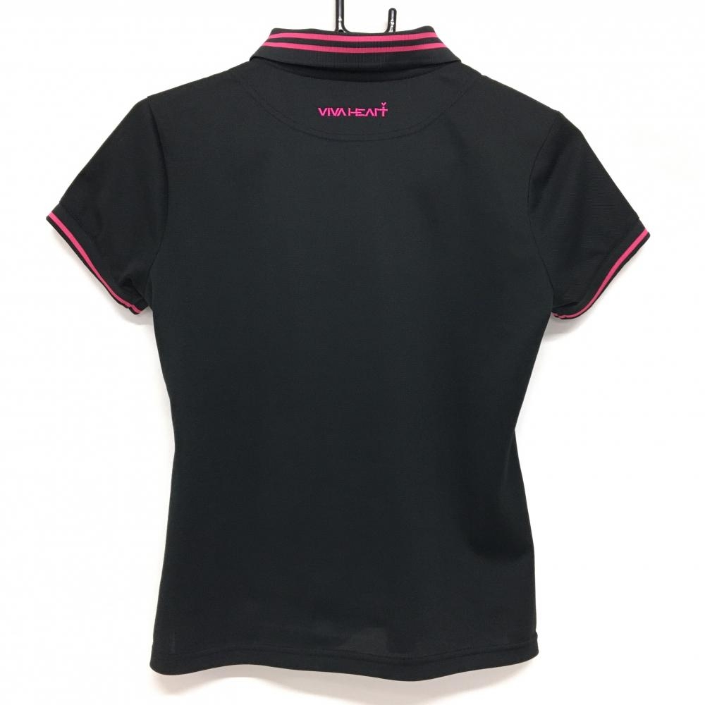 【超美品】ビバハート 半袖ポロシャツ 黒×ピンク フロントロゴ 襟袖ライン レディース 40(M) ゴルフウェア VIVA HEART