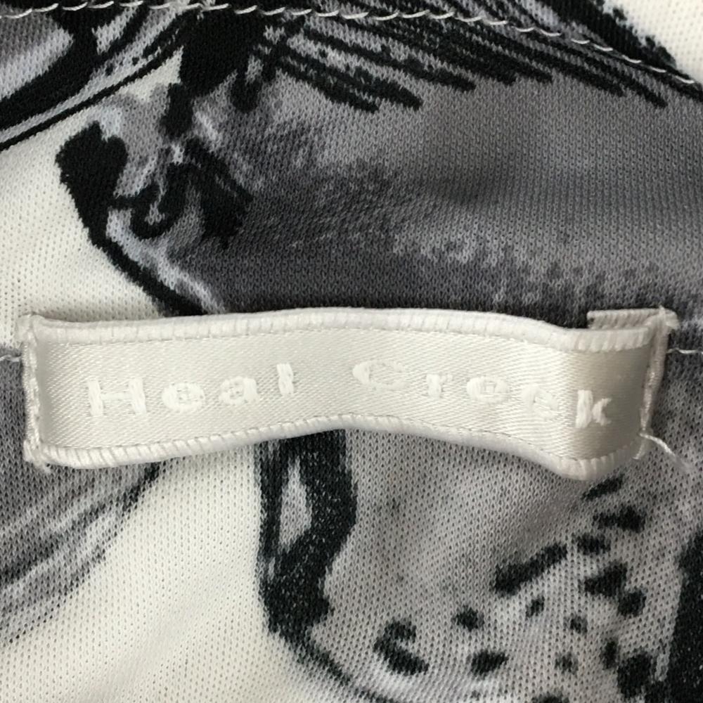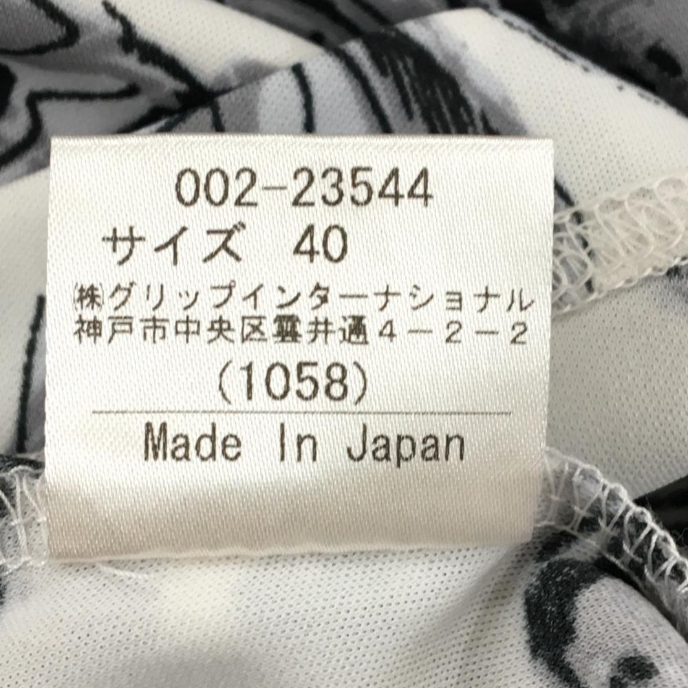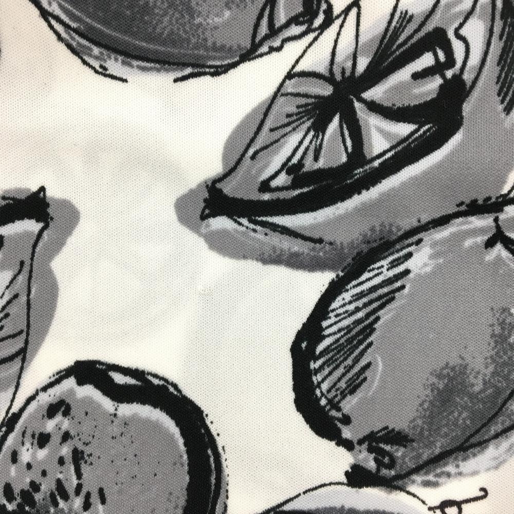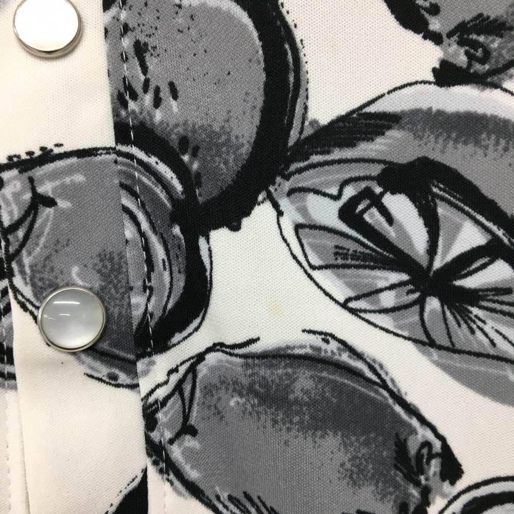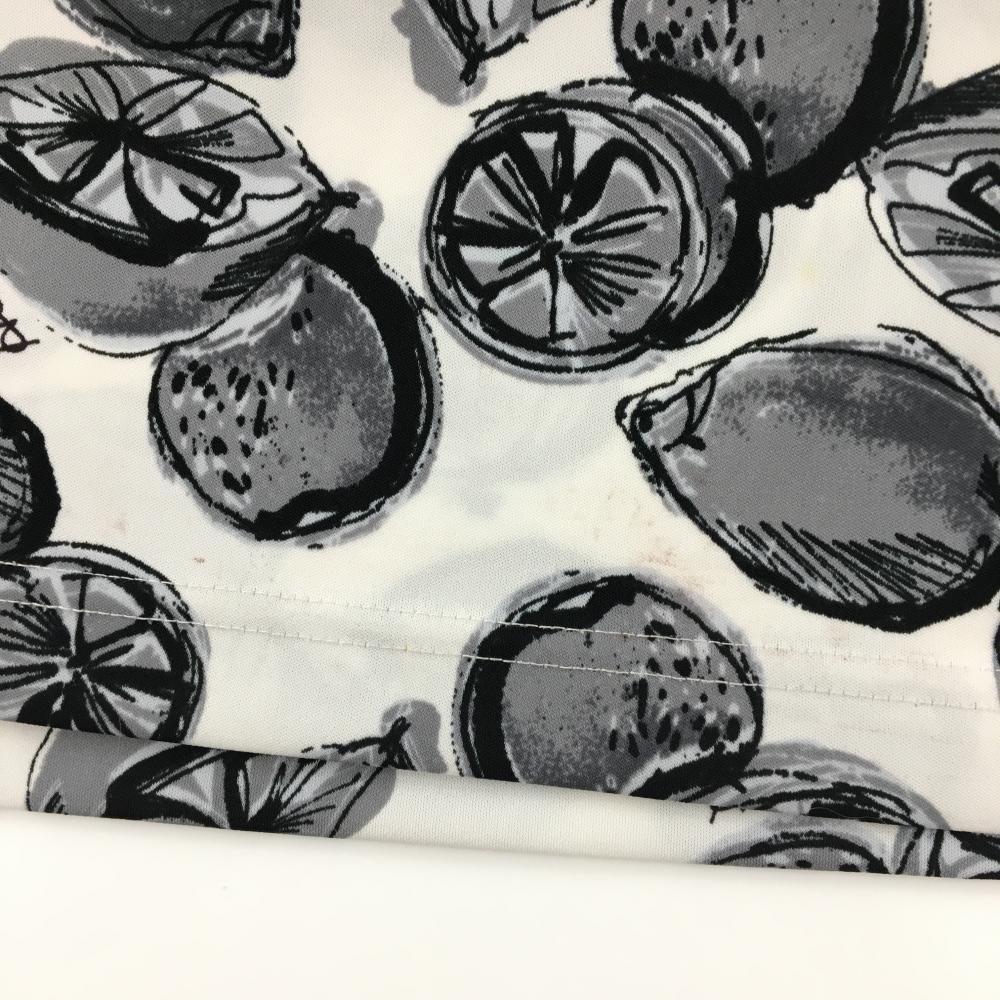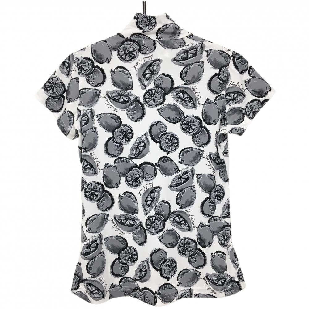 【美品】ヒールクリーク 半袖ハイネックシャツ 白×黒 レモン柄 スナップボタン レディース 40(M) ゴルフウェア Heal Creek