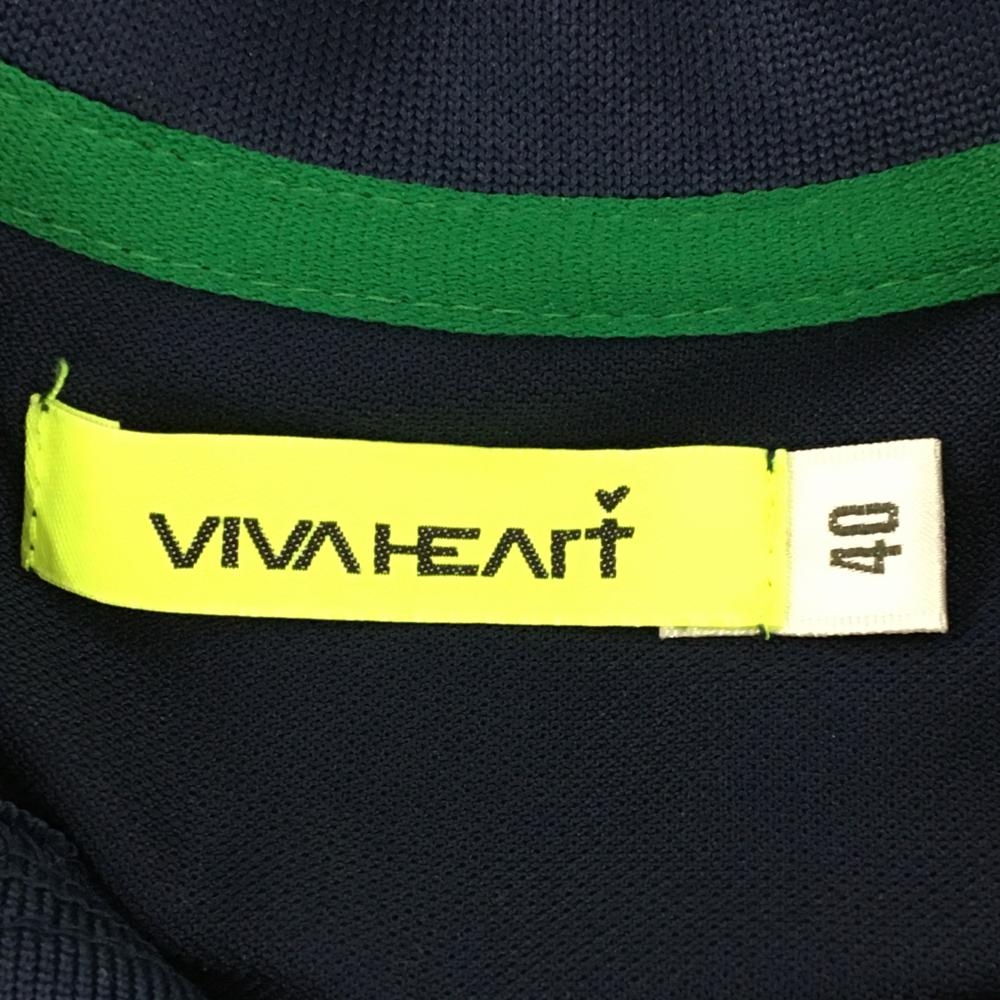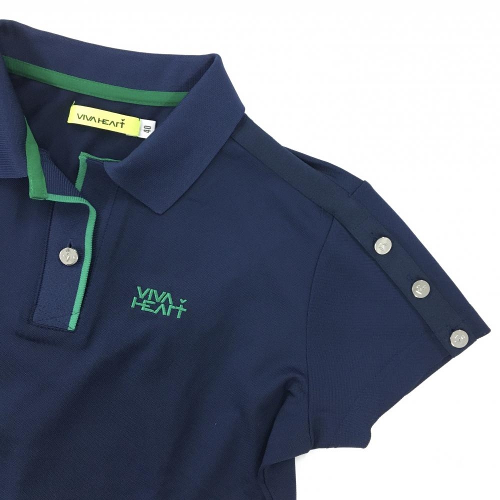 【美品】ビバハート 半袖ポロシャツ ネイビー×グリーン 袖ボタン レディース 40(M) ゴルフウェア VIVA HEART