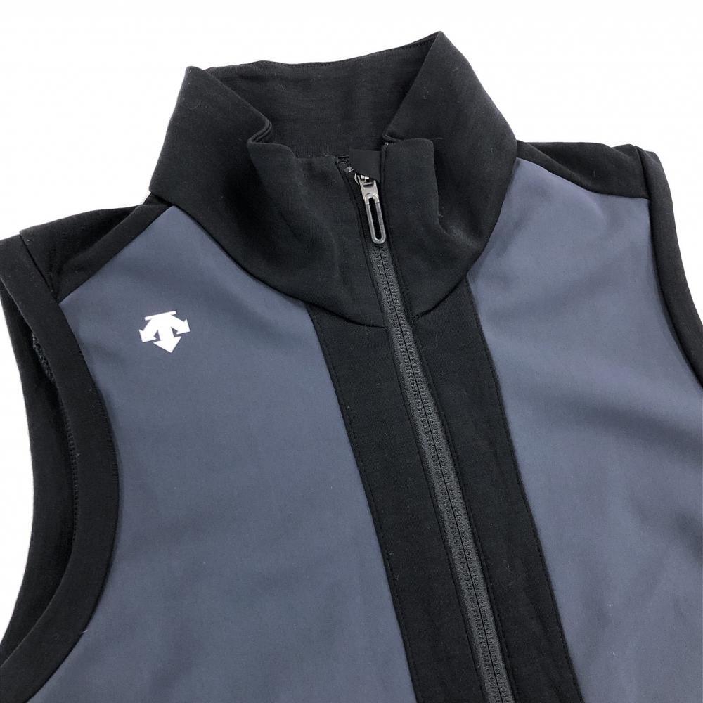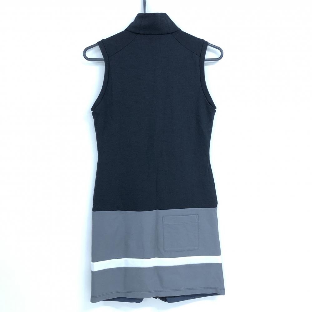 【美品】デサントゴルフ ノースリーブワンピース ダークグレー×黒 肩ロゴ 中田英寿 レディース M ゴルフウェア DESCENTE