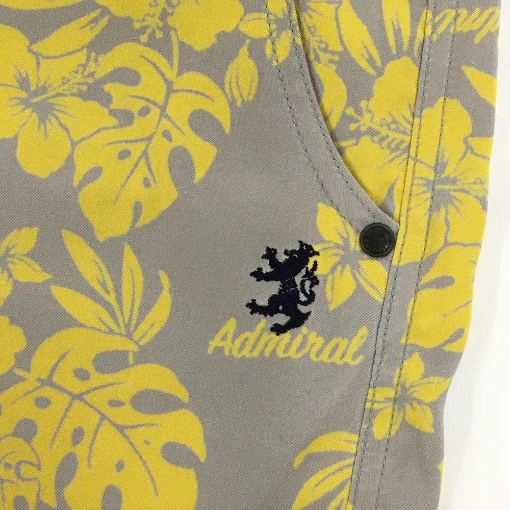 アドミラル ハーフパンツ グレー×イエロー ハイビスカス柄 ロゴ刺しゅう メンズ LL ゴルフウェア Admiral