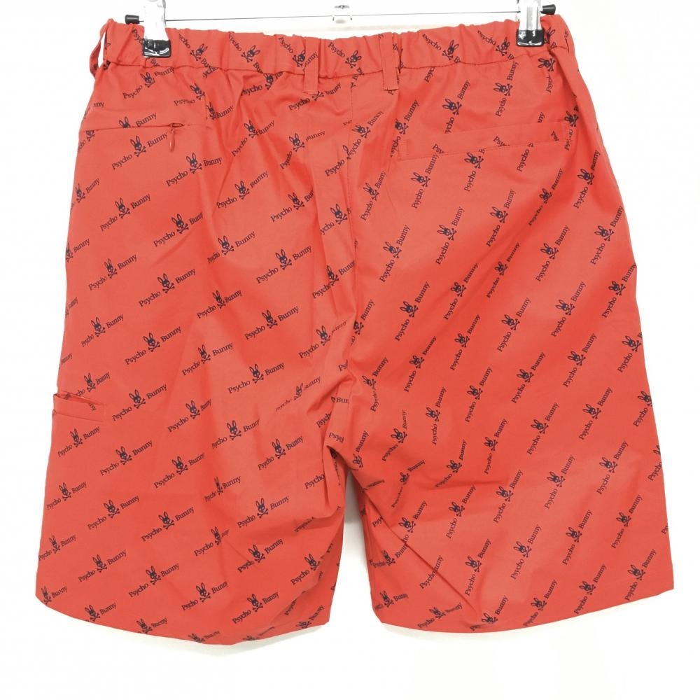 サイコバニー ハーフパンツ レッド×黒 ロゴ総柄 ウエスト一部ゴム メンズ L ゴルフウェア Psycho Bunny