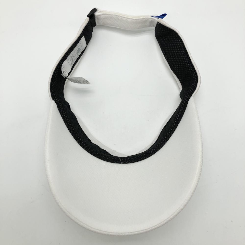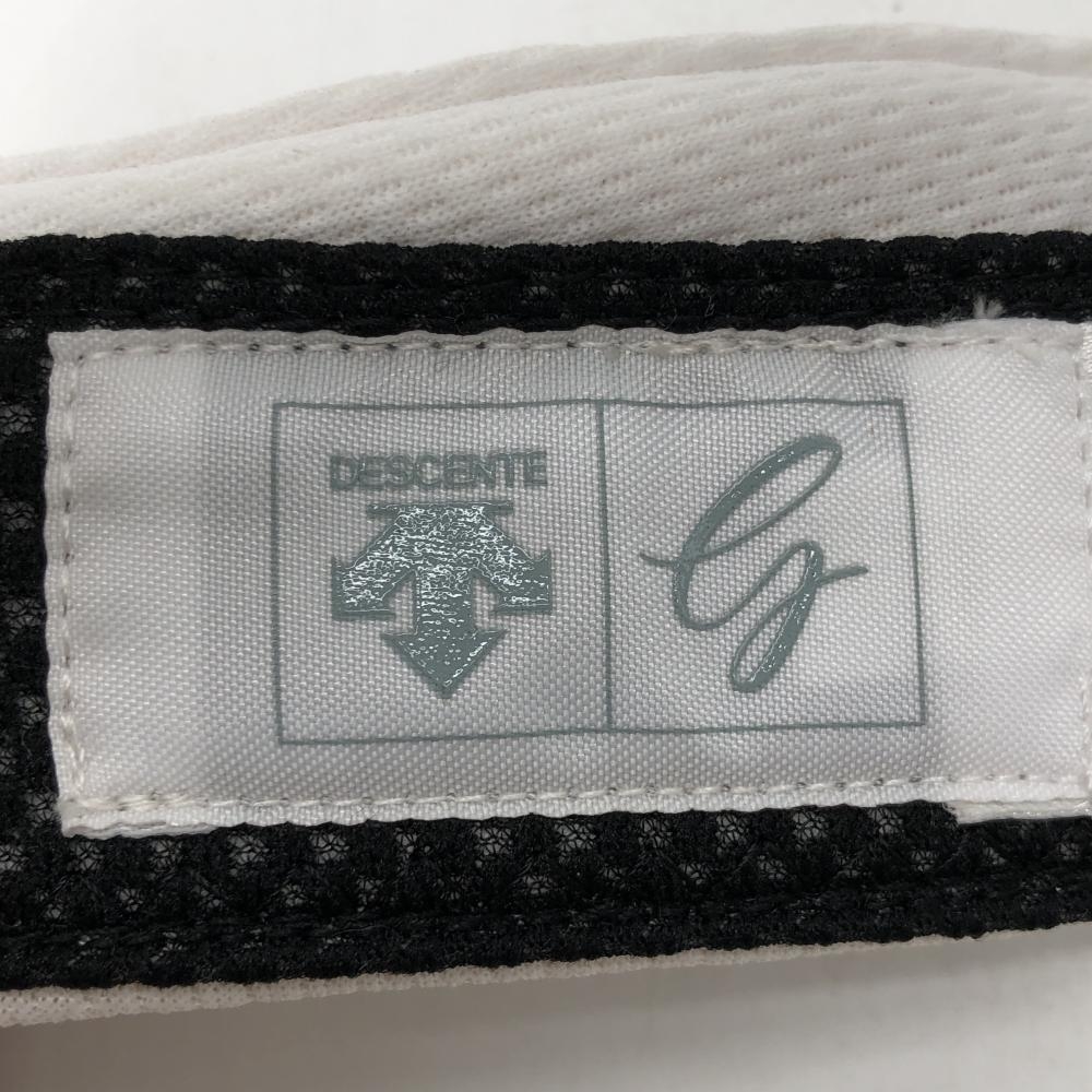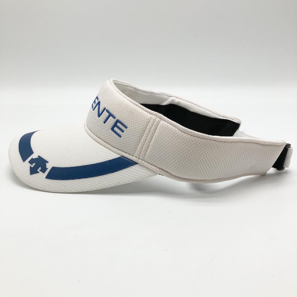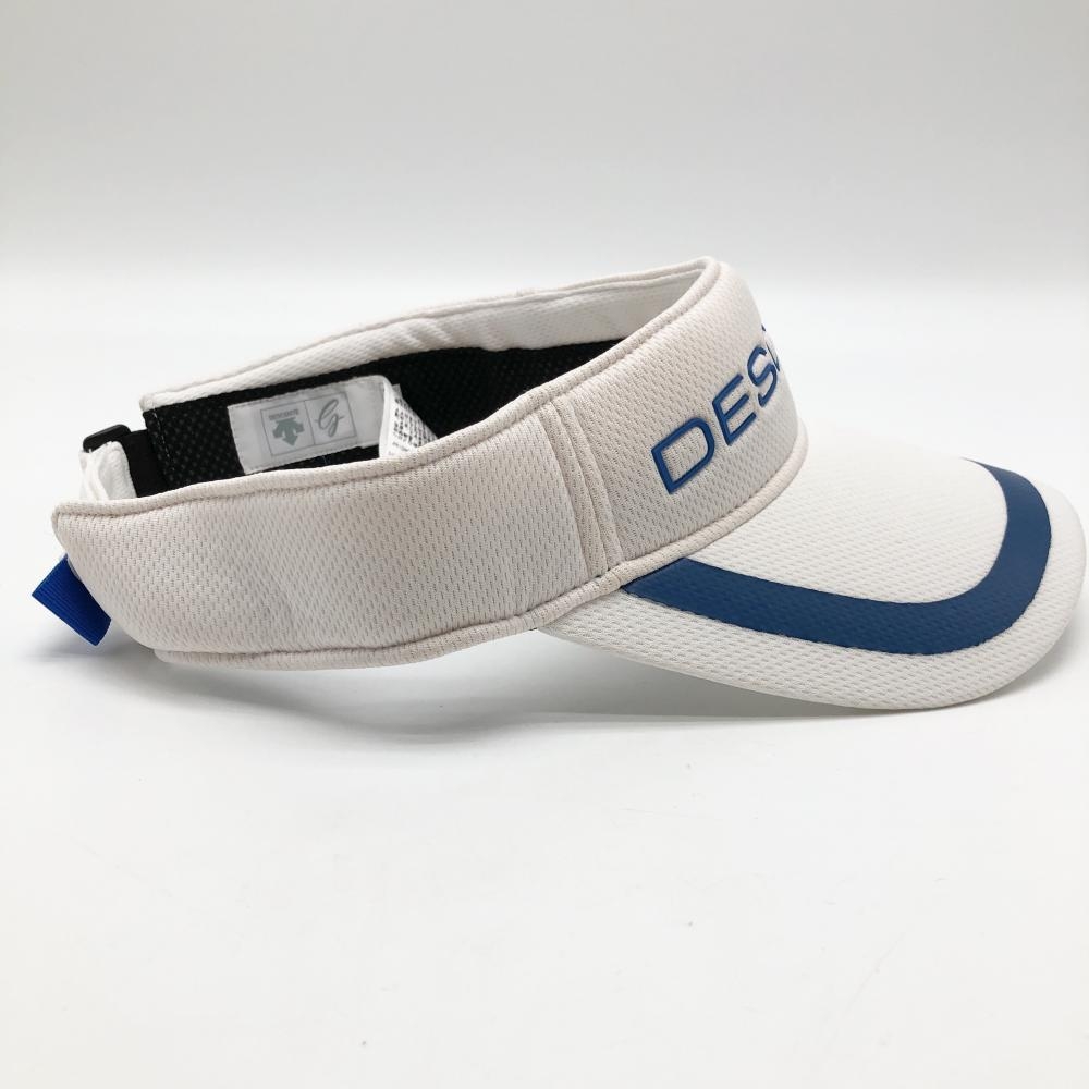 【超美品】デサントゴルフ サンバイザー 白×ブルー フロントロゴ つばライン 中田英寿 F(55cm-57cm) ゴルフウェア DESCENTE