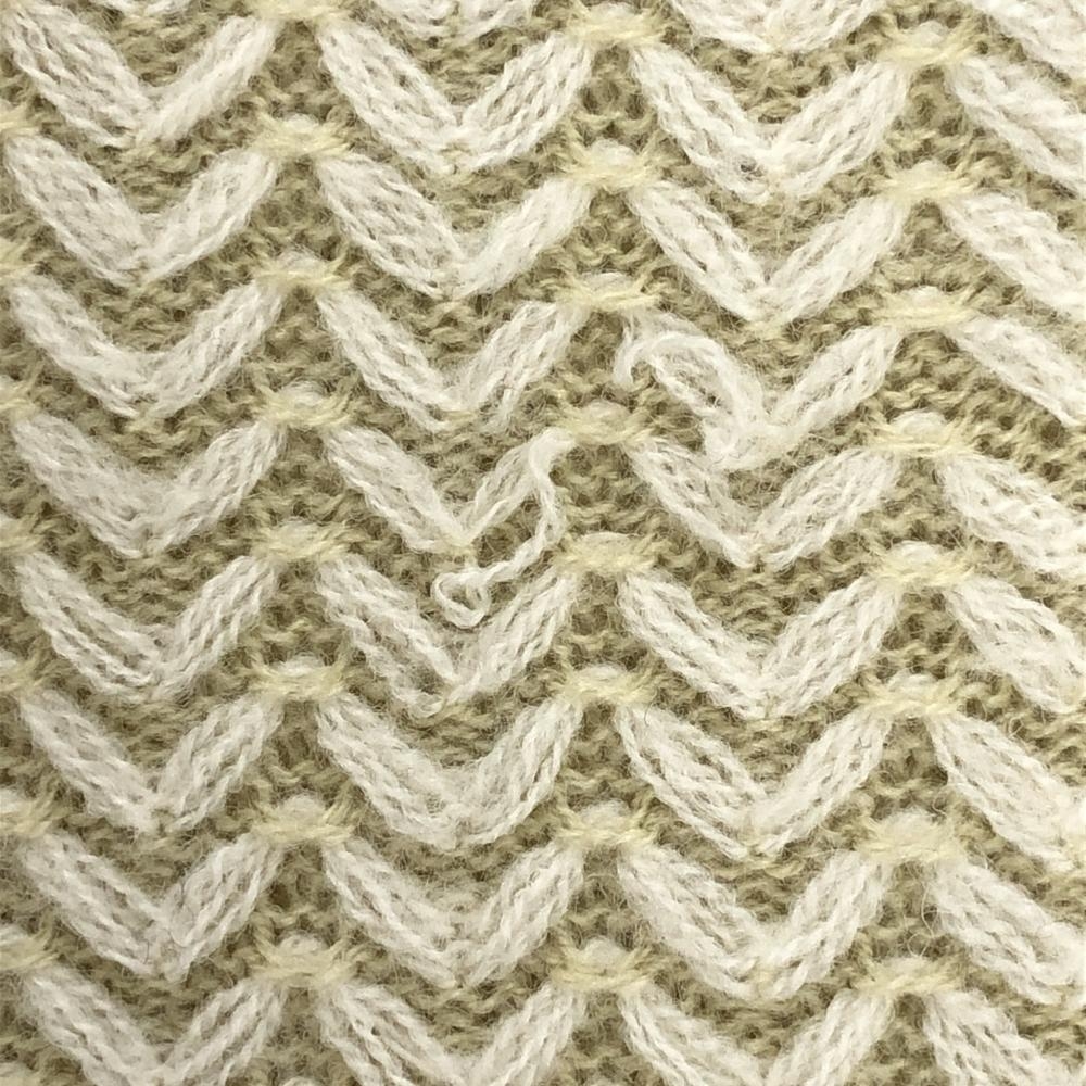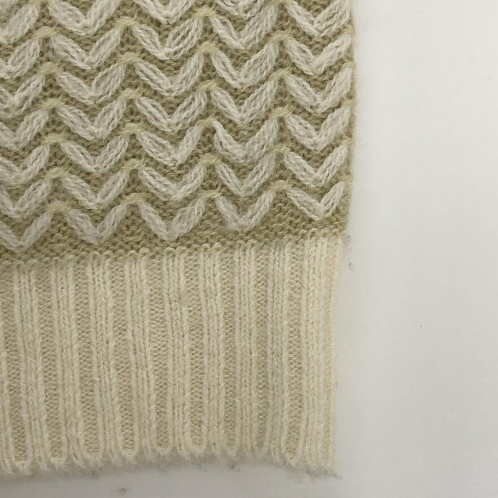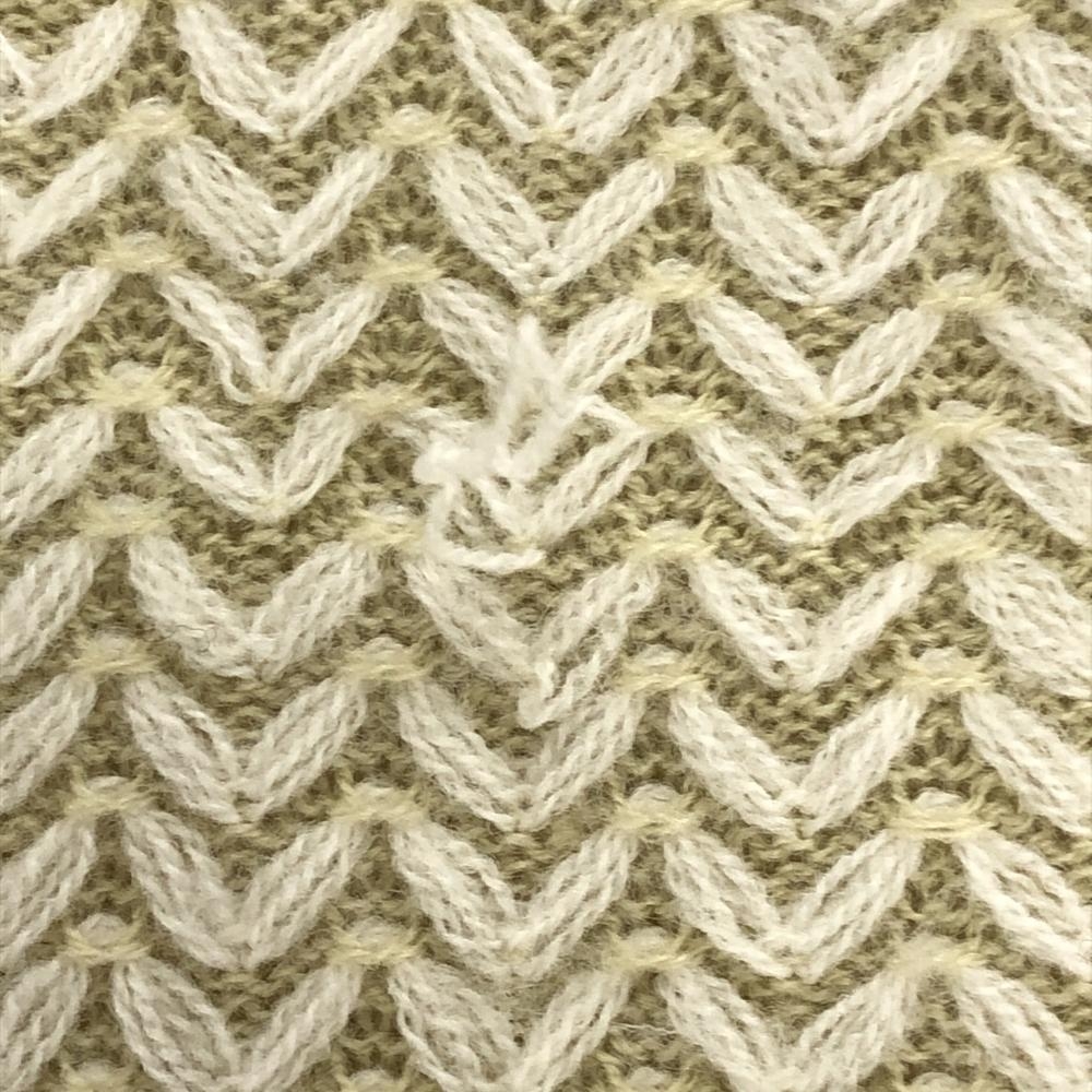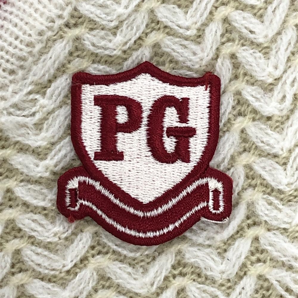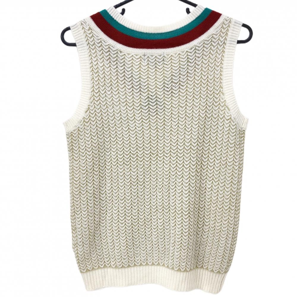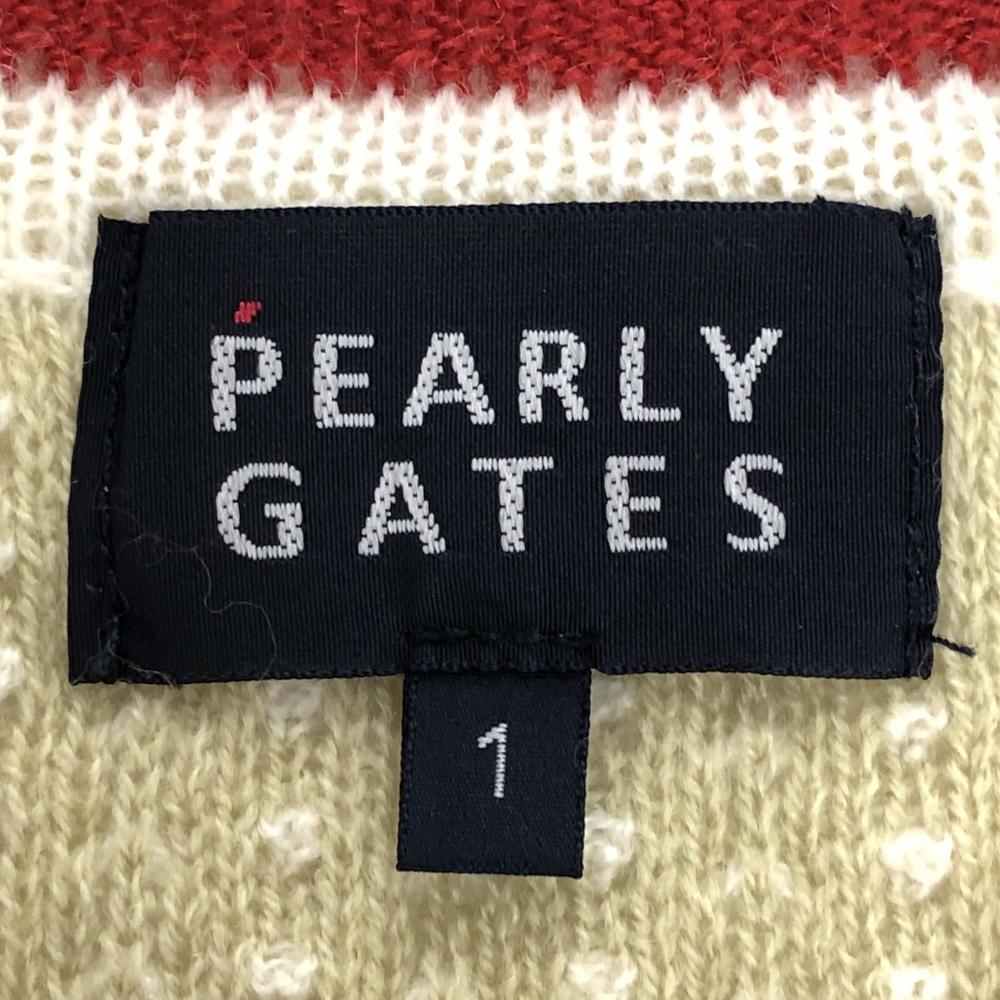 パーリーゲイツ ニットベスト 白×ベージュ 総柄 ウール混 Vネック レディース 1(M) ゴルフウェア PEARLY GATES