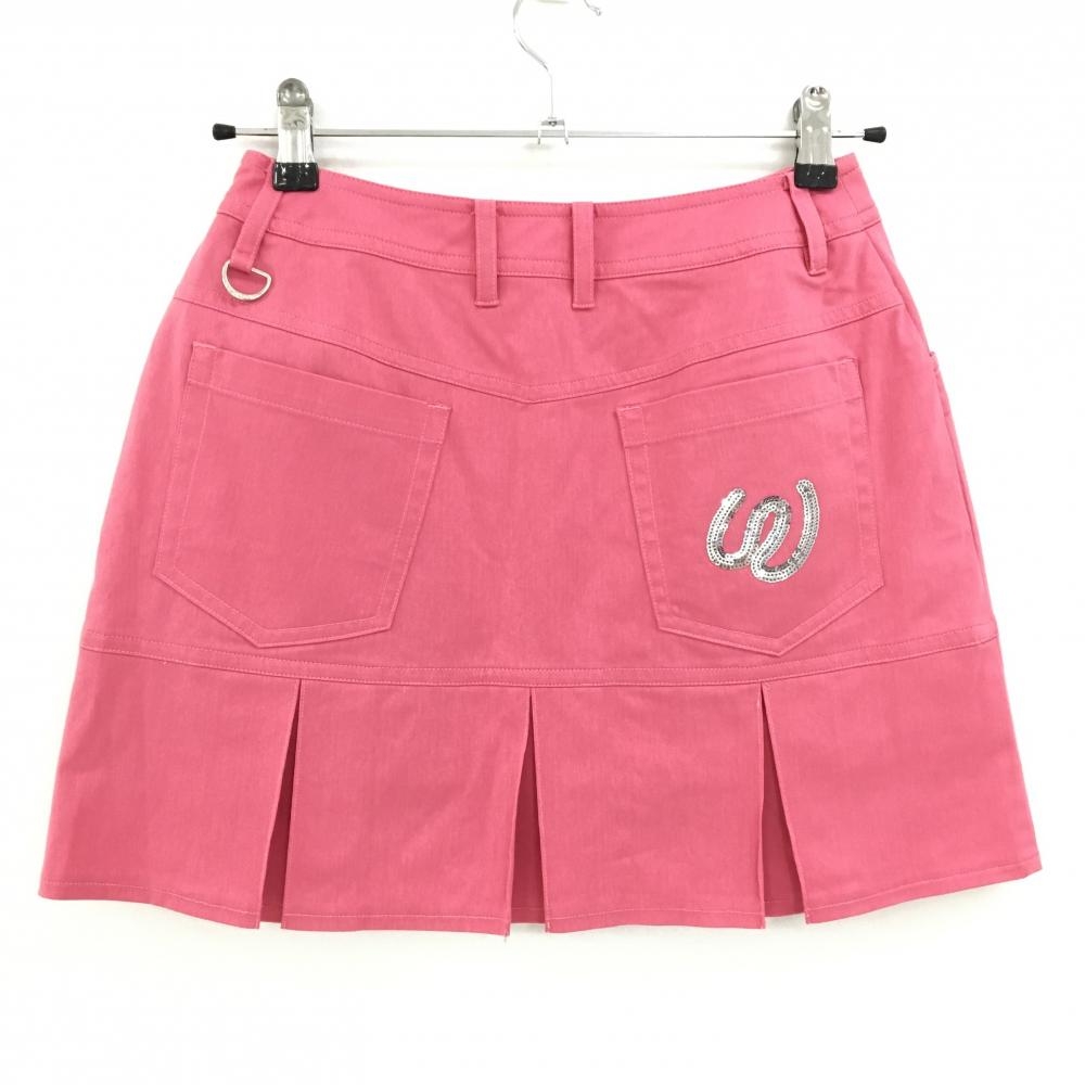 MUスポーツ スカート ピンク 裾ボックスプリーツ 刺しゅう 裏地付 レディース 38(S) ゴルフウェア M・U SPORTS