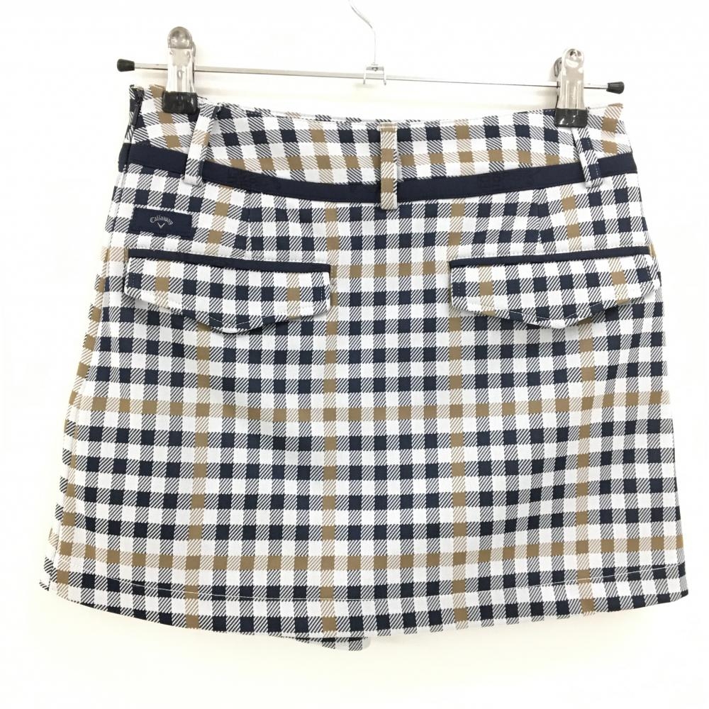 【美品】キャロウェイ スカート 白×ネイビー チェック 内側パンツ レディース SS ゴルフウェア Callaway