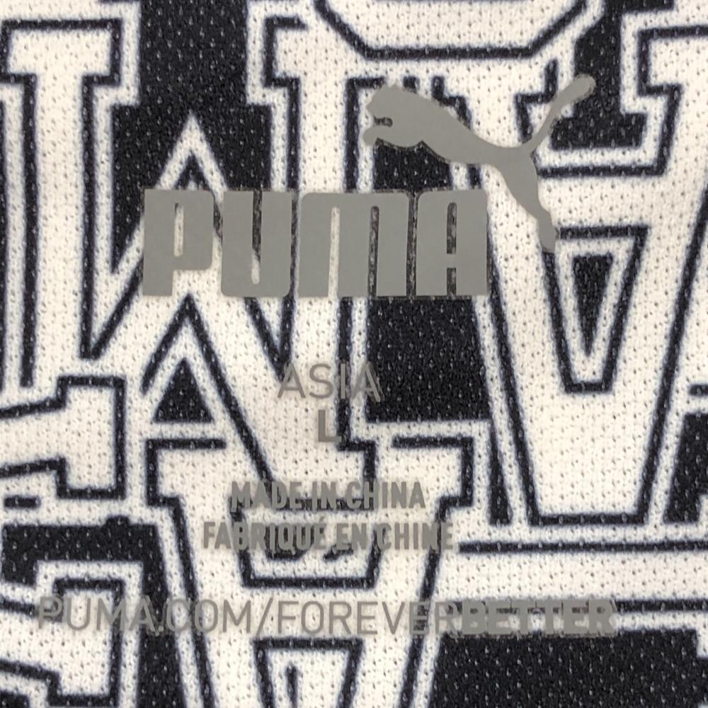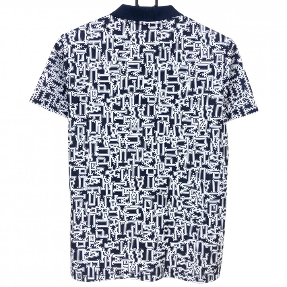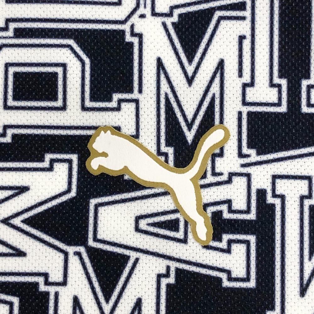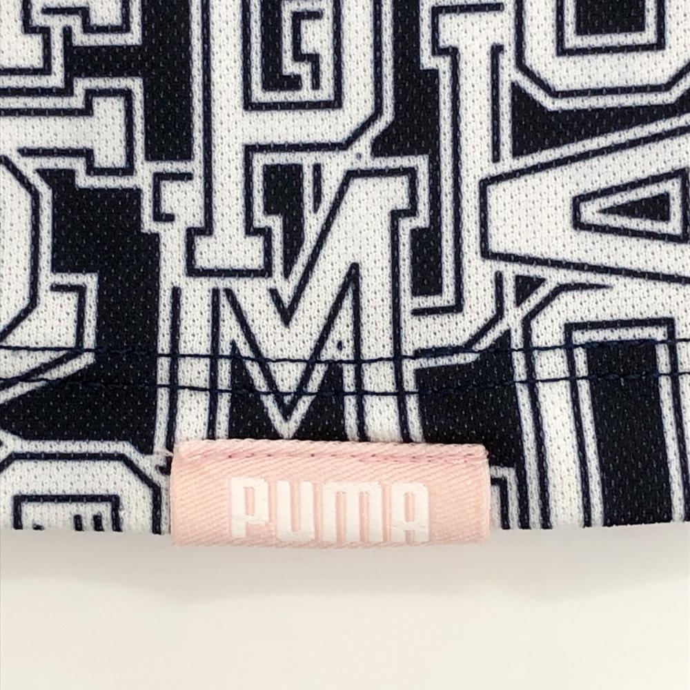【美品】プーマ 半袖ポロシャツ ネイビー×白 ロゴ総柄 レディース L ゴルフウェア PUMA
