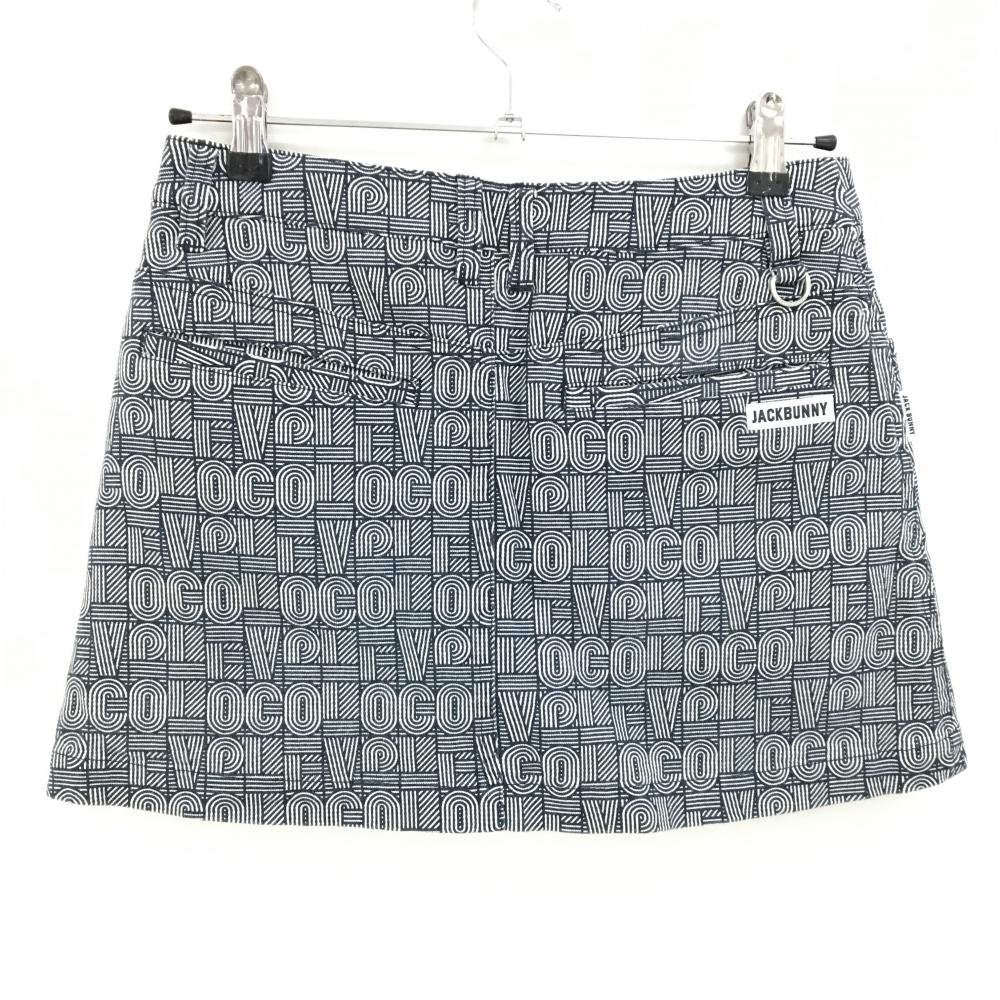 【美品】ジャックバニー スカート ネイビー×白 総柄 ストレッチ 内側インナーパンツ レディース 1(M) ゴルフウェア Jack Bunny