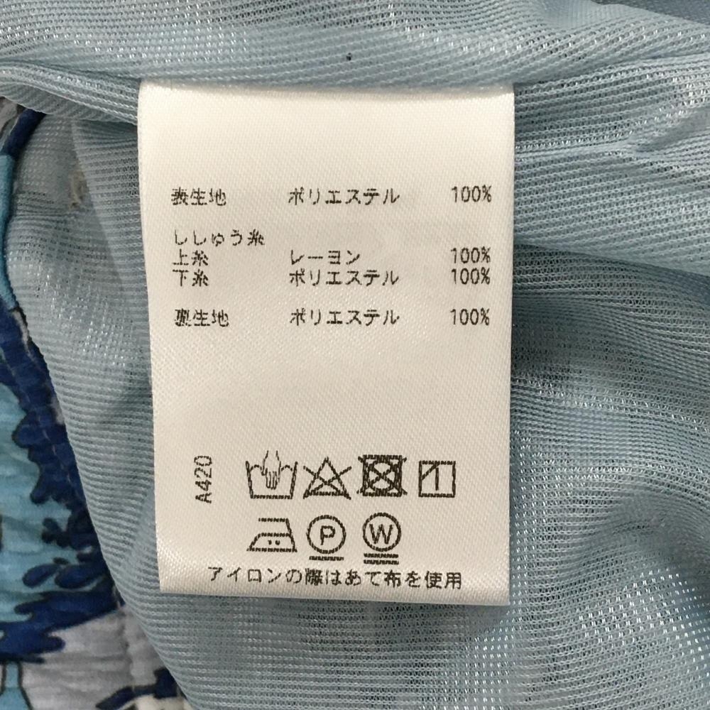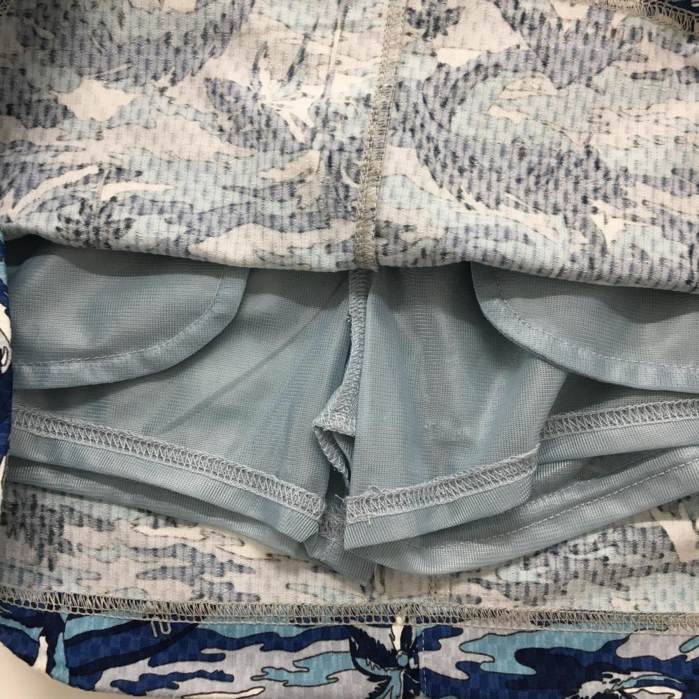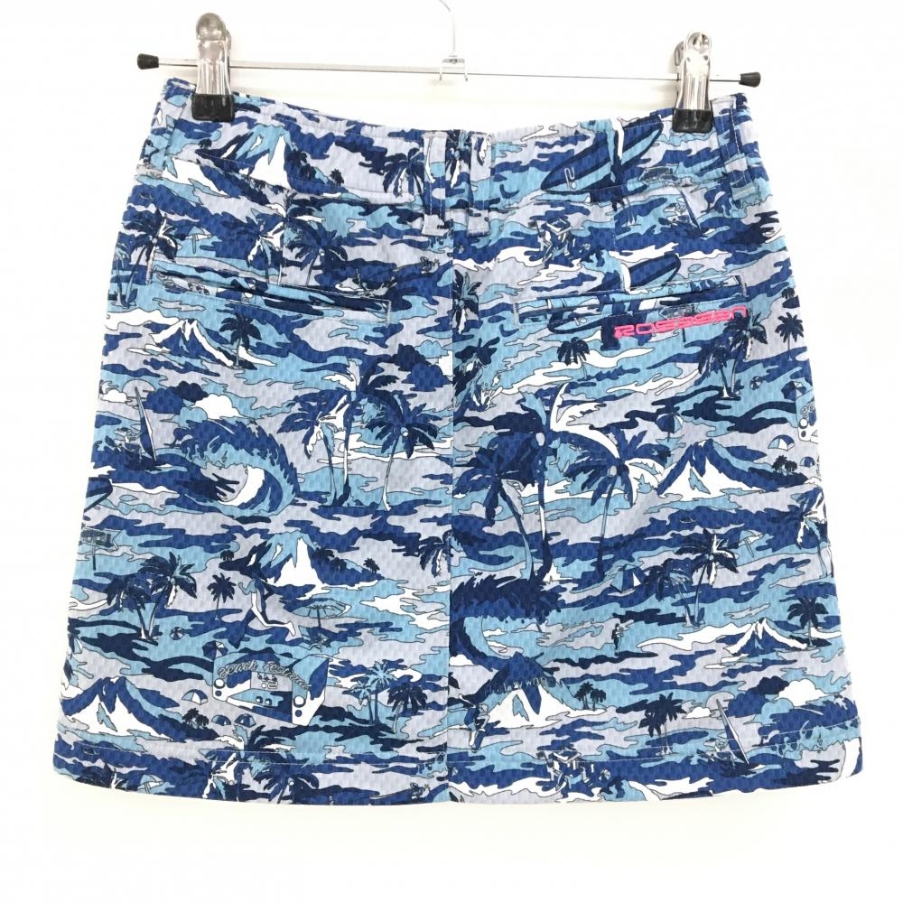 【超美品】ロサーセン スカート ライトグレー×ネイビー 総柄 ヤシの木 サーフィン ロゴ刺しゅう レディース S ゴルフウェア Rosasen