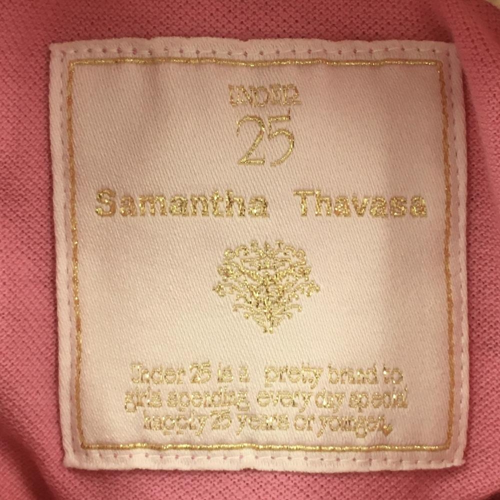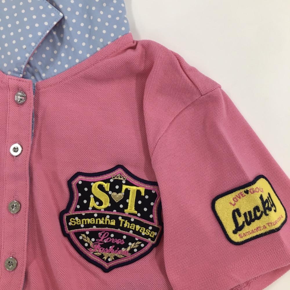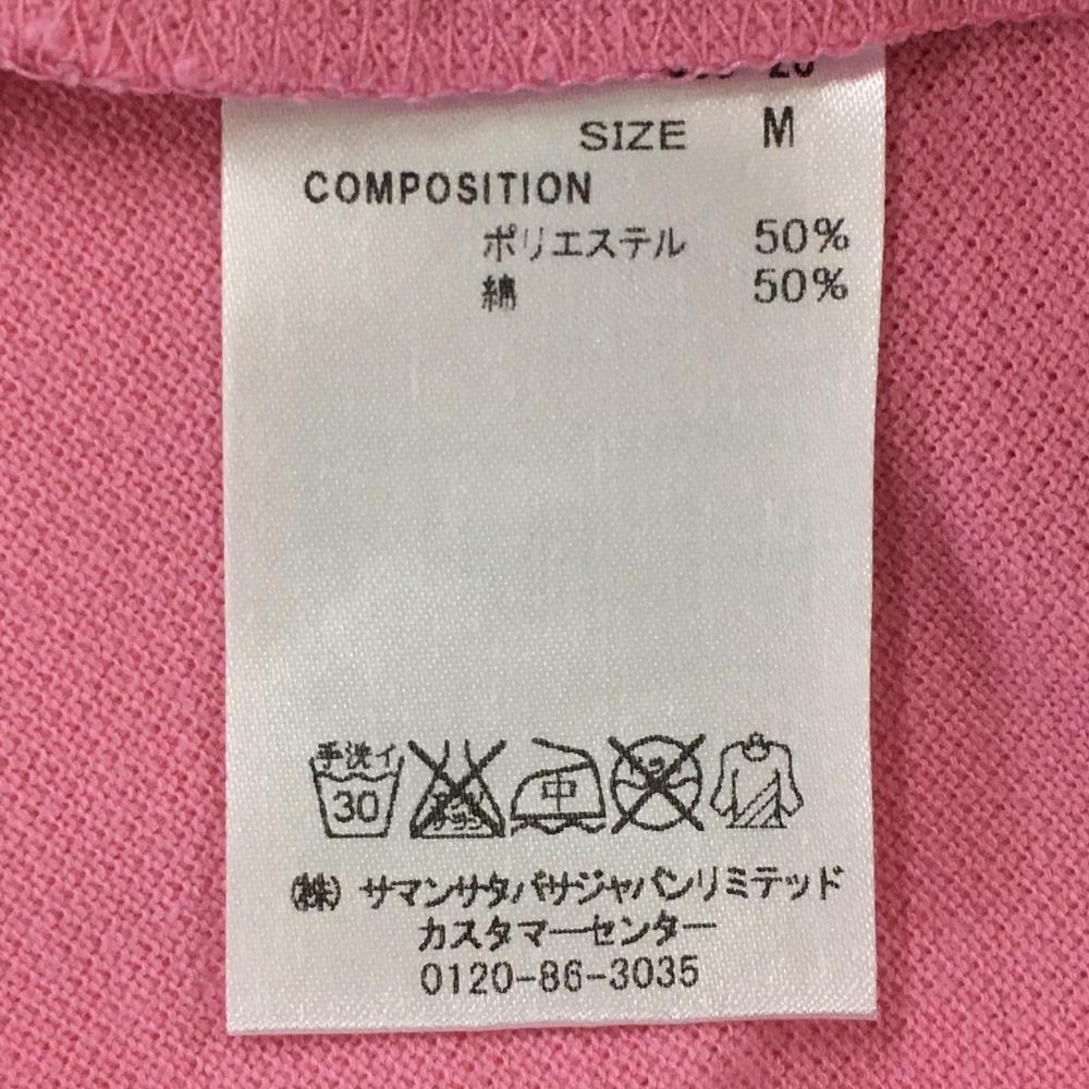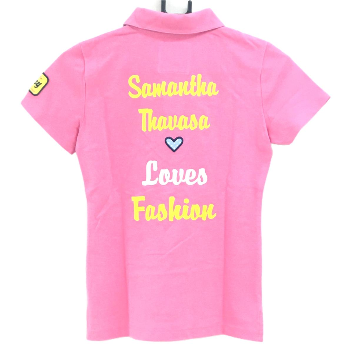 【美品】サマンサタバサUNDER25 半袖ポロシャツ ピンク×イエロー 背面プリント 襟裏ドット レディース M ゴルフウェア Samantha Thavasa