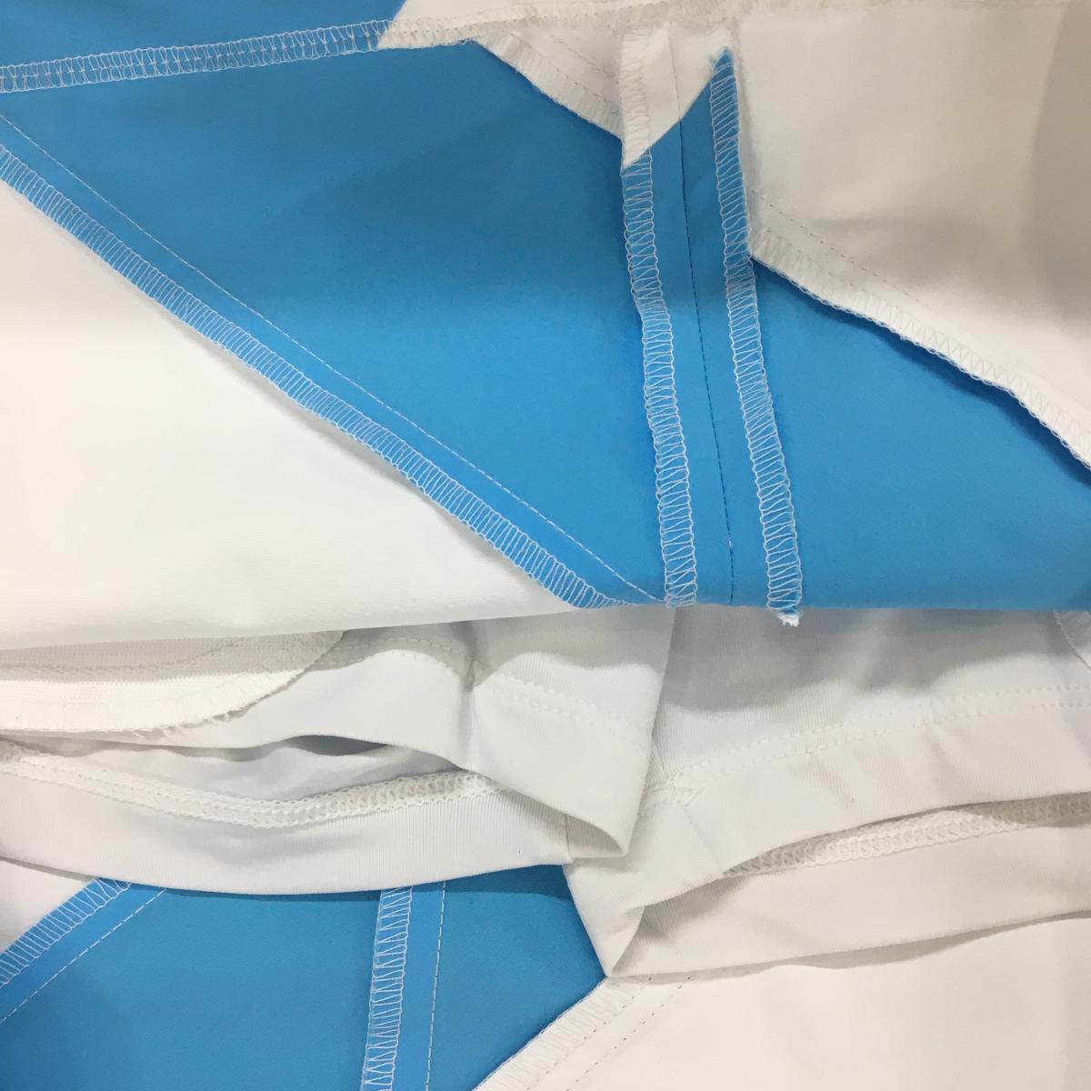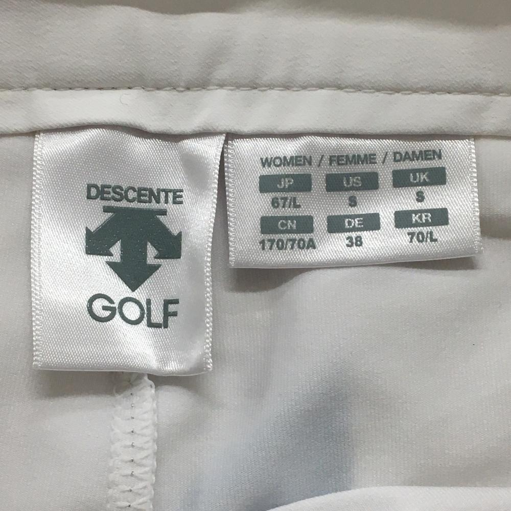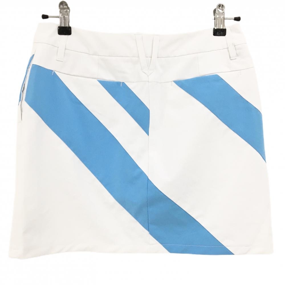 【美品】デサントゴルフ スカート 白×ライトブルー 斜めストライプ ストレッチ 中田英寿 レディース 67/L ゴルフウェア DESCENTE