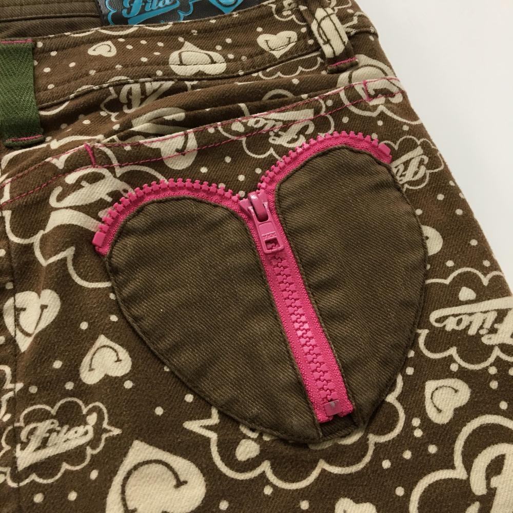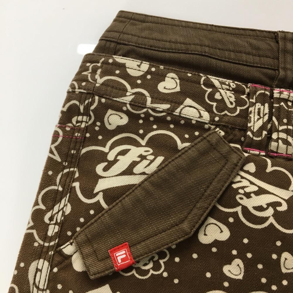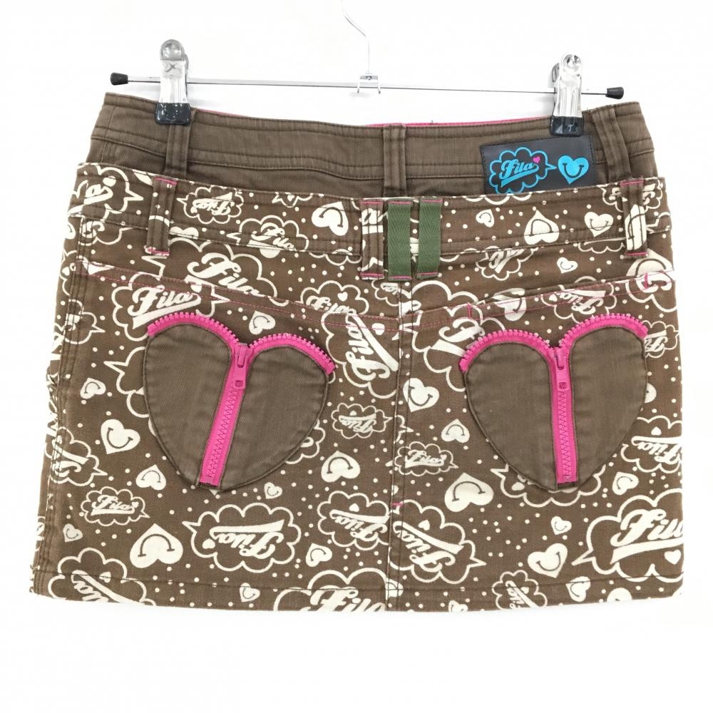 フィラゴルフ スカート ブラウン×ライトベージュ ロゴ総柄 ハートポケット ティー装着可 レディース M ゴルフウェア FILA GOLF